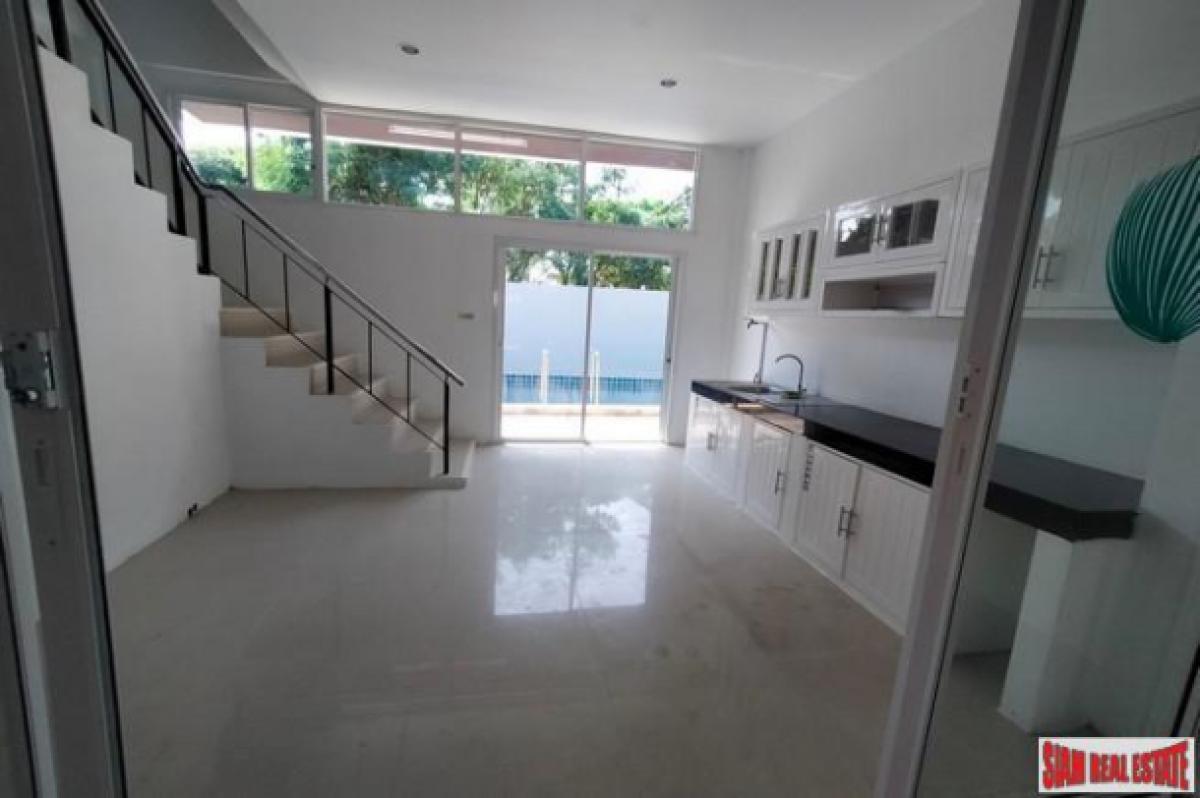 For sale a two bedroom, two bath townhouse with private pool in Rawai near the beach and restaurants. The project has four units.This is a two storey unit with 84.4 sqm total living space. The first floor has a living room, WC and kitchen. The kitchen door connects to the pool behind the house. The second floor has two bedrooms, both with ensuite bathrooms. One of the bedrooms has a pool view and the second bedroom has an outside view.