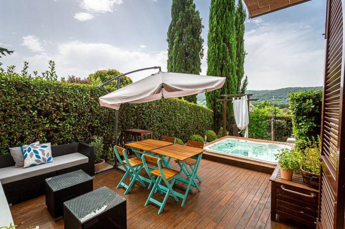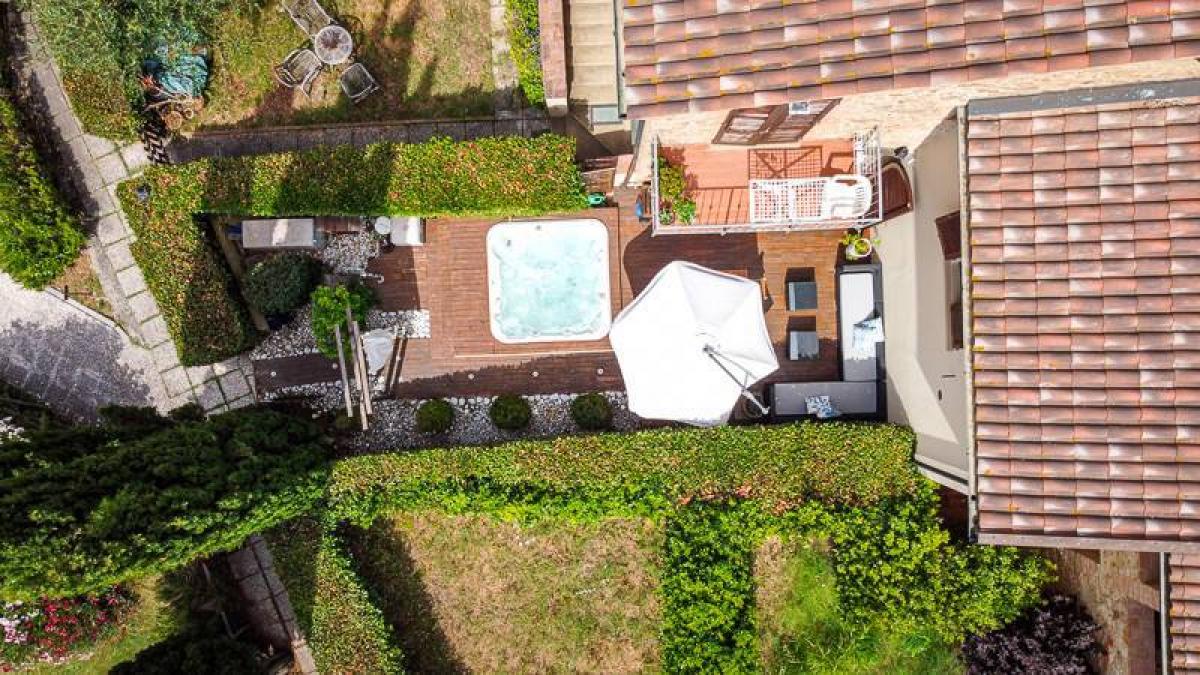 The private garden extends on two sides of the house, providing a perfect space to enjoy the tranquility of the area. To complete the property, an outdoor jacuzzi is placed in a corner of the garden, creating an ideal space for outdoor relaxation while enjoying views of the surrounding landscape. The property also includes an exclusive parking space in a designated parking area.
