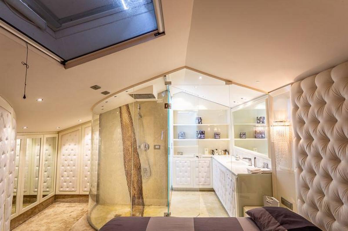 From the first floor, an internal staircase leads to the attic level, which houses a second master bedroom with an en-suite bathroom and a walk-in closet. Each floor is equipped with its own bathroom, and the layout ensures optimal comfort for all needs.