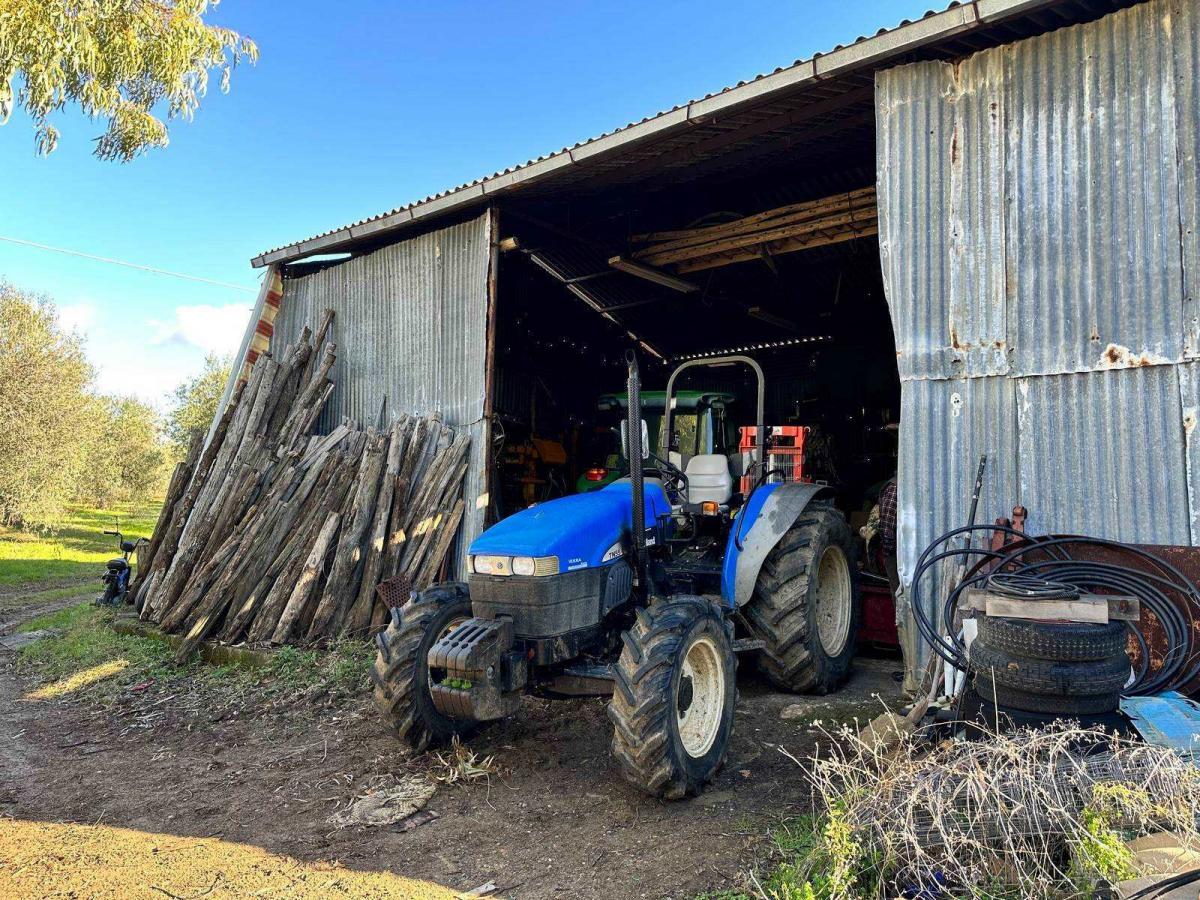 The courtyard features a well, and the sale also includes all necessary agricultural equipment, including tractors, a grape transport tank, and other tools.