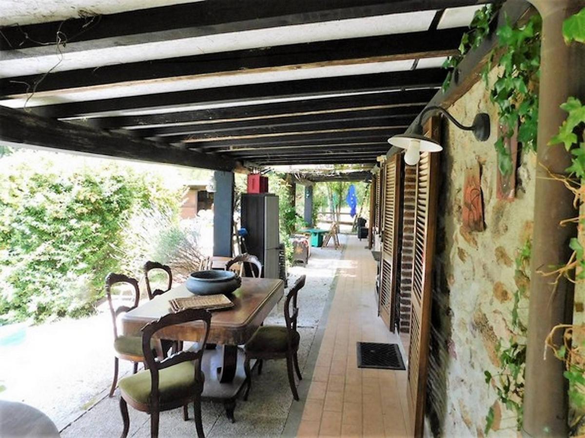 The estate spans 2 hectares of land, partly surrounded by woods and offering breathtaking panoramic views of the Tuscan hills. The large covered outdoor spaces make it perfect for enjoying the countryside throughout the year.