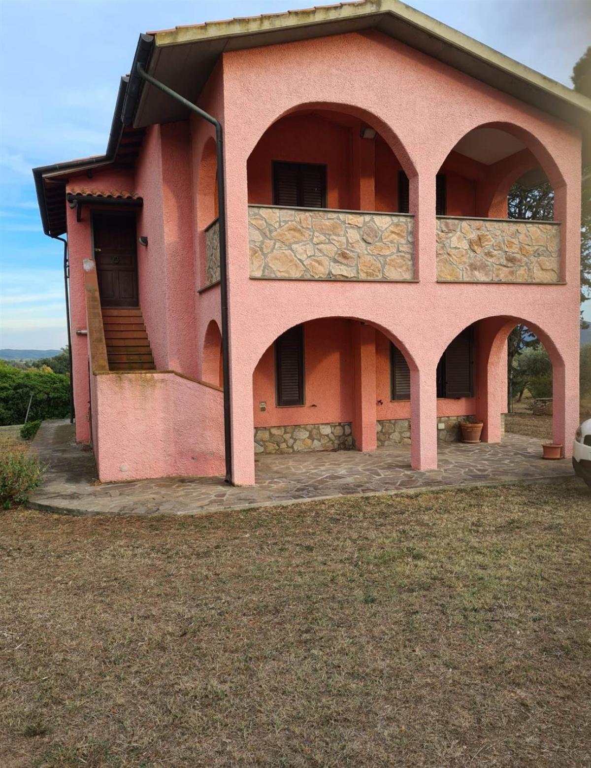 Description: in a breathtaking panoramic location in the Tuscan countryside, just a few kilometers from the Ribolla area and only 30 km from the city of Grosseto, this fully renovated farmhouse spans two levels. The property, easily accessible by paved road, is located in a flat area but offers exceptional privacy and stunning views of the surrounding hills.