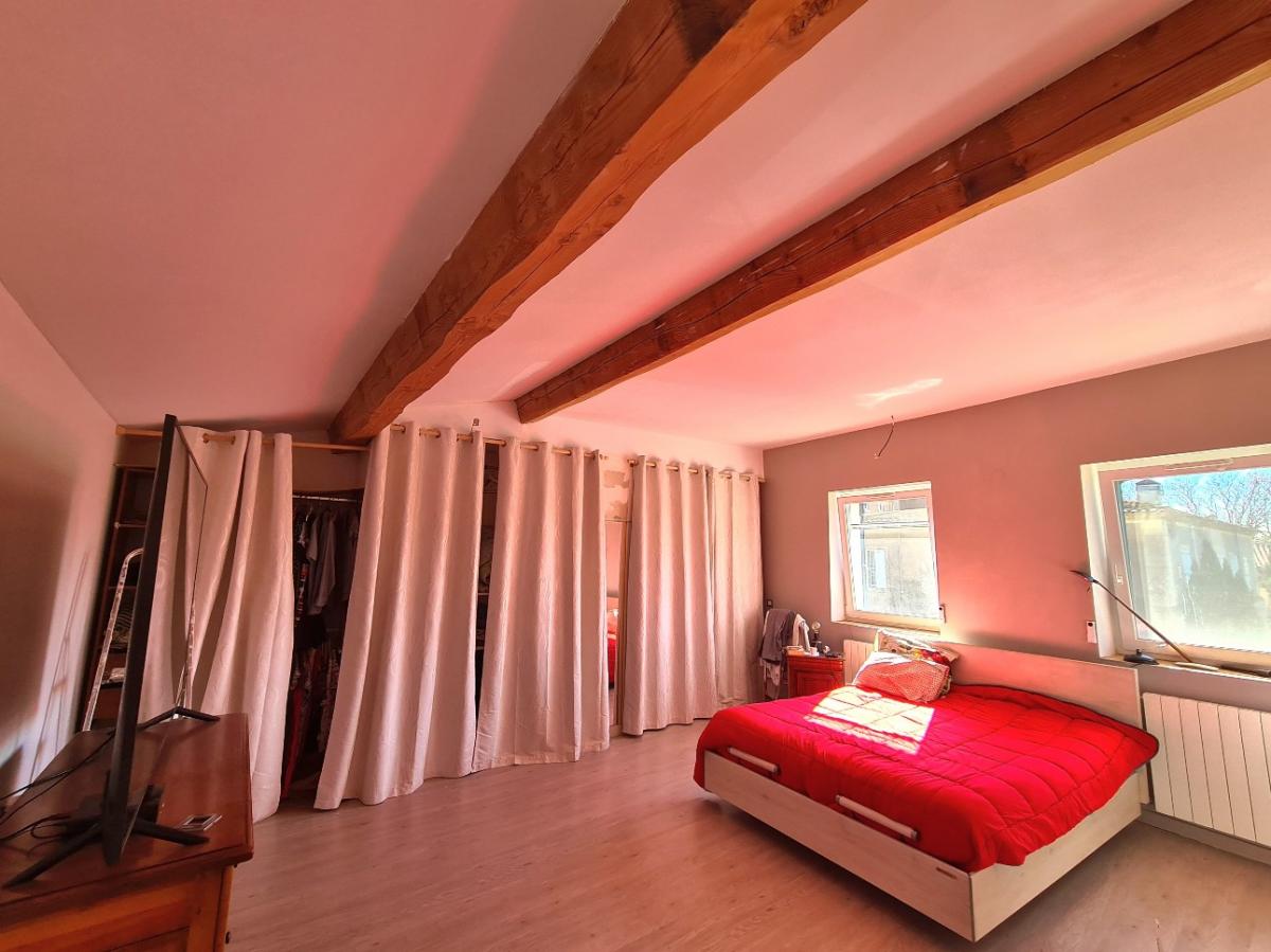 - 2nd floor: Large and pleasant bedroom of 27.21 m2 with nice view on the hills, room of 5.81 m2 (possibility to create a shower room, water arrivals already there), terrace of 10 m2 with view on the roofs.