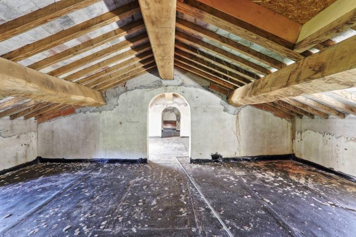 The property spans three levels. On the ground floor are four spacious storage rooms, while the first floor features seven residential rooms. The attic, with four additional rooms, offers further potential for conversion. Thanks to the ceiling heights, all three levels can be fully converted into living spaces.