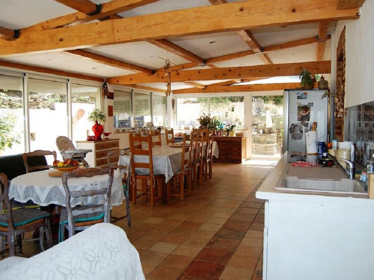REDUCED in price - Charming stone farmhouse, enlarged by a more recent construction, on 1.5 hectares of land, with approximately 180m2 of living space, it is composed as follows:- Lower garden level: Entrance hall, independent fitted kitchen, living room with wood stove.