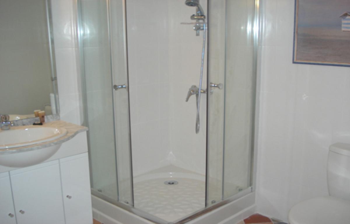 2nd = Landing of 1.5 m2 + 1 bedroom apartment (Les Oliviers) of approximately 60 m2 in total, offering a bright lounge with kitchen and dining area of 38 m2 with large window looking at the square (table extends and can seat 8 people), one double-bedroom of 14 m2 with fitted wardrobe and bathroom of 8 m2 (corner bath, shower, handbasin and separate WC).