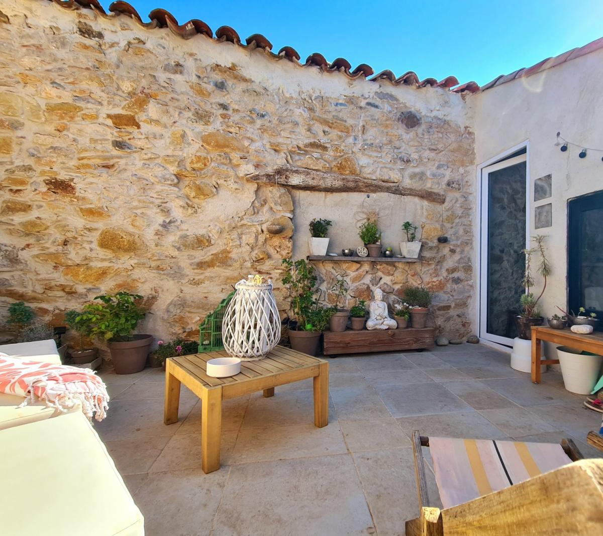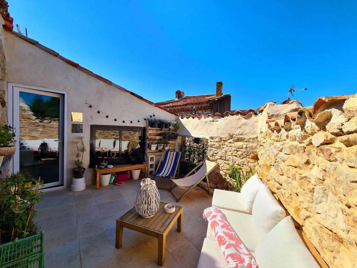 REDUCED in price - Charming characterfull village house entirely renovated, offering a living space of 118 m2, it is composed of 3 bedrooms (2 are masters), 2 bathrooms/shower rooms, several lounges, a fully equipped kitchen, a cellar and a pleasant roof terrace, not overlooked. Charming with some character. Quiet and parking spaces nearby.- Location: Hamlet without shops, but only 2 minutes from Saint-Chinian, 5 minutes from Cessenon-sur-Orb and 40 minutes from the beach.