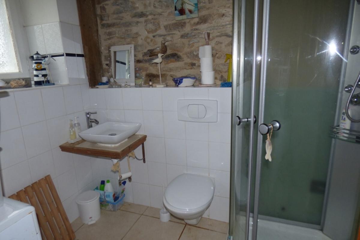 Lovely country house for sale in the heart of a small hamlet, 10 minutes from Malestroit. The ground floor comprises a lounge/dining room with a built in kitchenette, a fireplace and wood-burning stove, a hallway, a shower room and WC, and a veranda. Upstairs, there is a landing, an office (or third bedroom), two bedrooms, and a family bathroom (with bath and shower). The basement includes a garage, a storage room, and a laundry room. The property sits on a 1542 m2 garden. Local shops and the Nantes-Brest Canal are less than 5 minutes away. Full of charm! (5.50 % fees incl. VAT at the buyer's expense.)Further informations