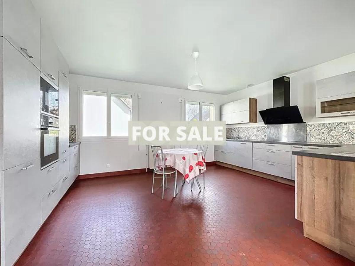 Located near the town center, in a quiet residential area with bus stops, schools, and shops nearby, this family home offers single-level living and spacious rooms across 200 sq m of living space.- Ground floor: (approx. 107 sq m), there is a large entrance hall with a wardrobe, a living room with a wood-burning stove, a dining room opening onto a large fitted and equipped kitchen, a WC, and a bedroom with a washroom.