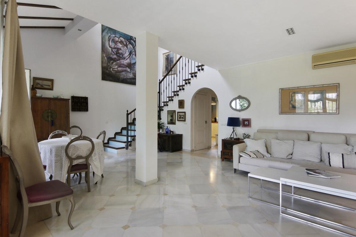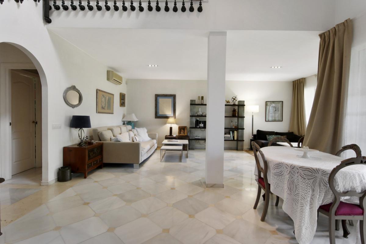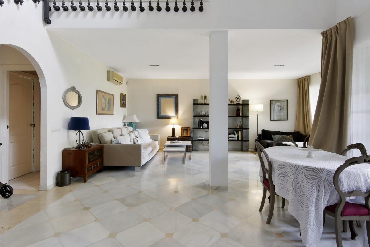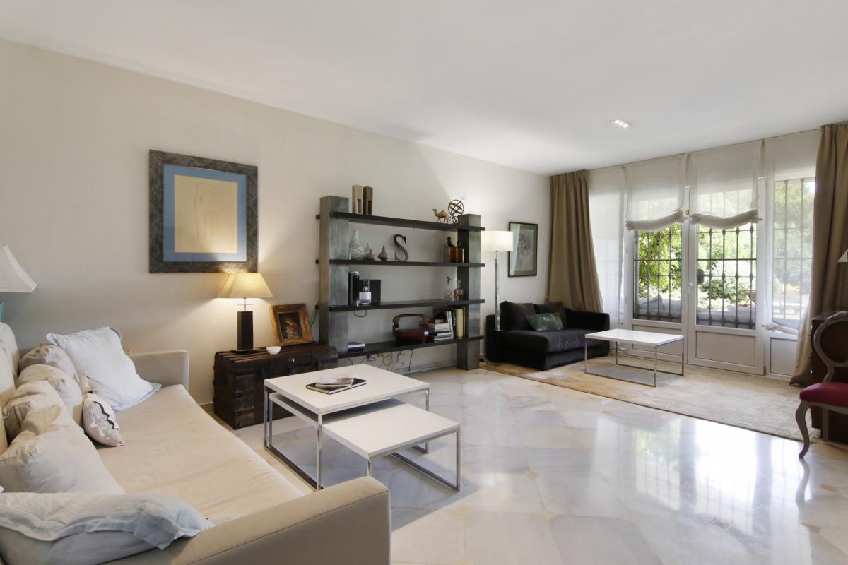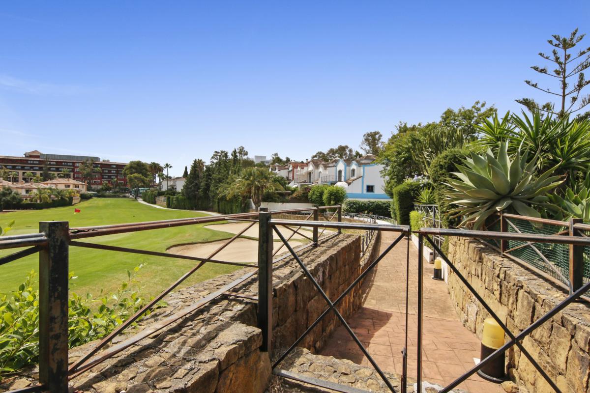 This elegant 3-bedroom home enjoys a privileged position directly on the fairways of Guadalmina Golf Club. Set at the end of its row in a community of just nine townhouses, it offers the privacy and feel of a semi-detached villa, along with the largest private garden in the community. With its classic Mediterranean architecture, the property provides a timeless canvas ready to be customised by its new owners.From street level, there are two separate entrances: a pedestrian gate leading through the front garden to the main door, and a vehicle entrance opening onto a covered carport with space for two cars.inside, the main level features a bright double-height living and dining area, with large windows that open onto a covered terrace and the expansive garden beyond. The fully fitted kitchen overlooks the front garden, while this floor also includes a guest bedroom and a full bathroom with shower.The garden is an exceptional highlightstretching nearly 40 meters to the edge of the golf course. Bordered by mature trees on both sides, it offers both privacy and endless potential for landscaping, outdoor entertaining, and more.Upstairs, the master suite enjoys a generous bathroom and a private terrace with sweeping views across the garden to the golf course. The second upstairs bedroom also benefits from its own en-suite bathroom and views towards the front of the house.Located in the sought-after area of Guadalmina Alta, this home is surrounded by high-end villas and exclusive communities. The small, well-run community features a spacious pool and guest parking. San Pedro town is just 3 minutes away by car, the beach can be reached in under 10 minutes, and Malaga airport is less than an hour away.