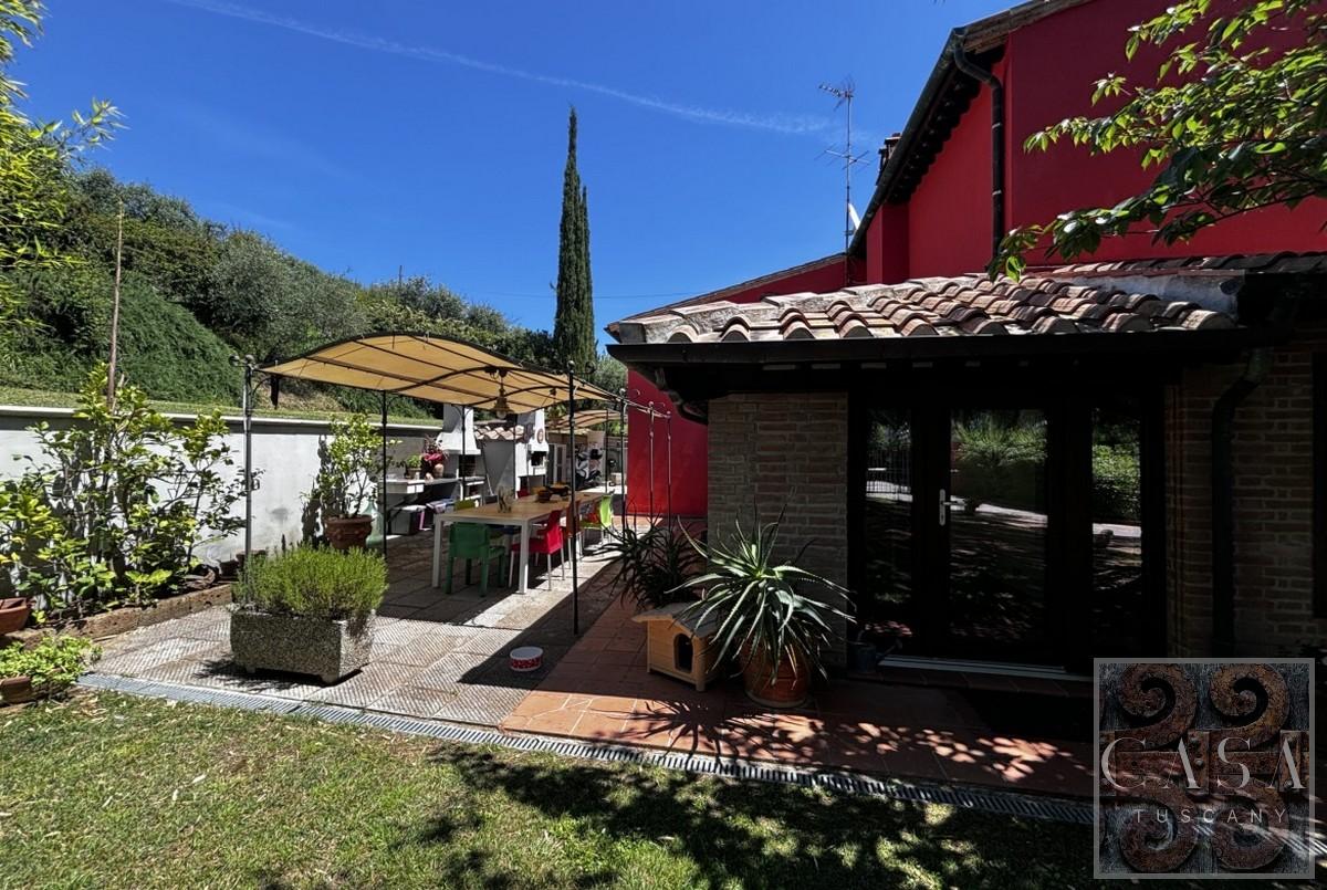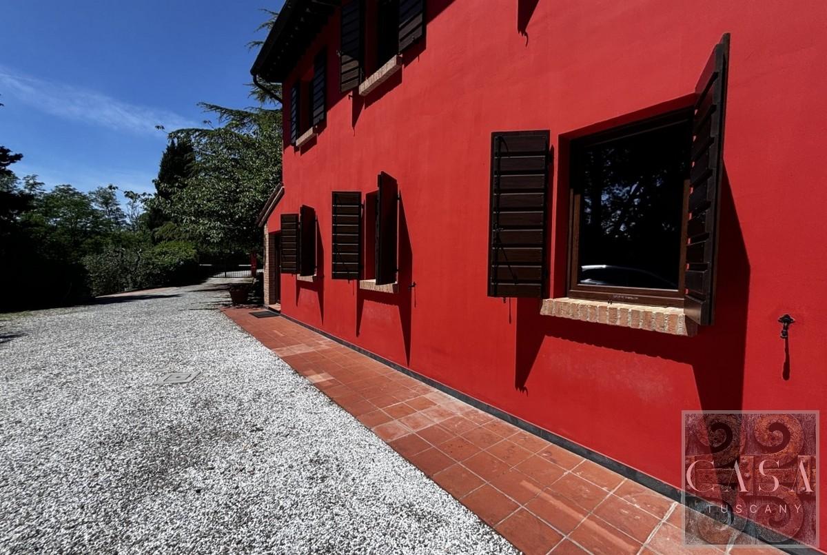 On the first floor, there are 3 bedrooms and the second bathroom, all with Tuscan ceilings and wooden floors.
