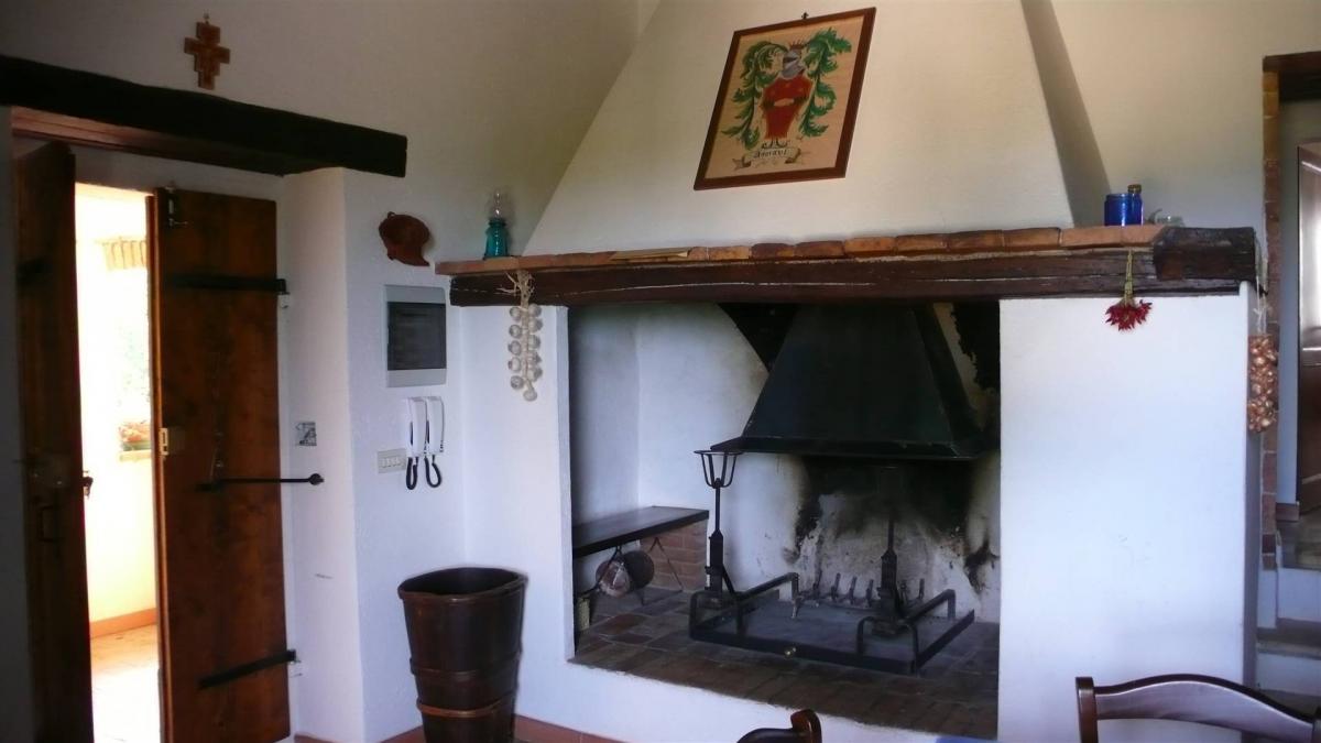 The main apartment is located on the first floor, accessed via a characteristic external staircase. it includes a large living room with a grand fireplace, typical of Tuscan rural tradition, a kitchen, a hallway, three bedrooms, and two bathrooms. The loggia in front of the entrance is perfect for relaxing while enjoying the surrounding views.