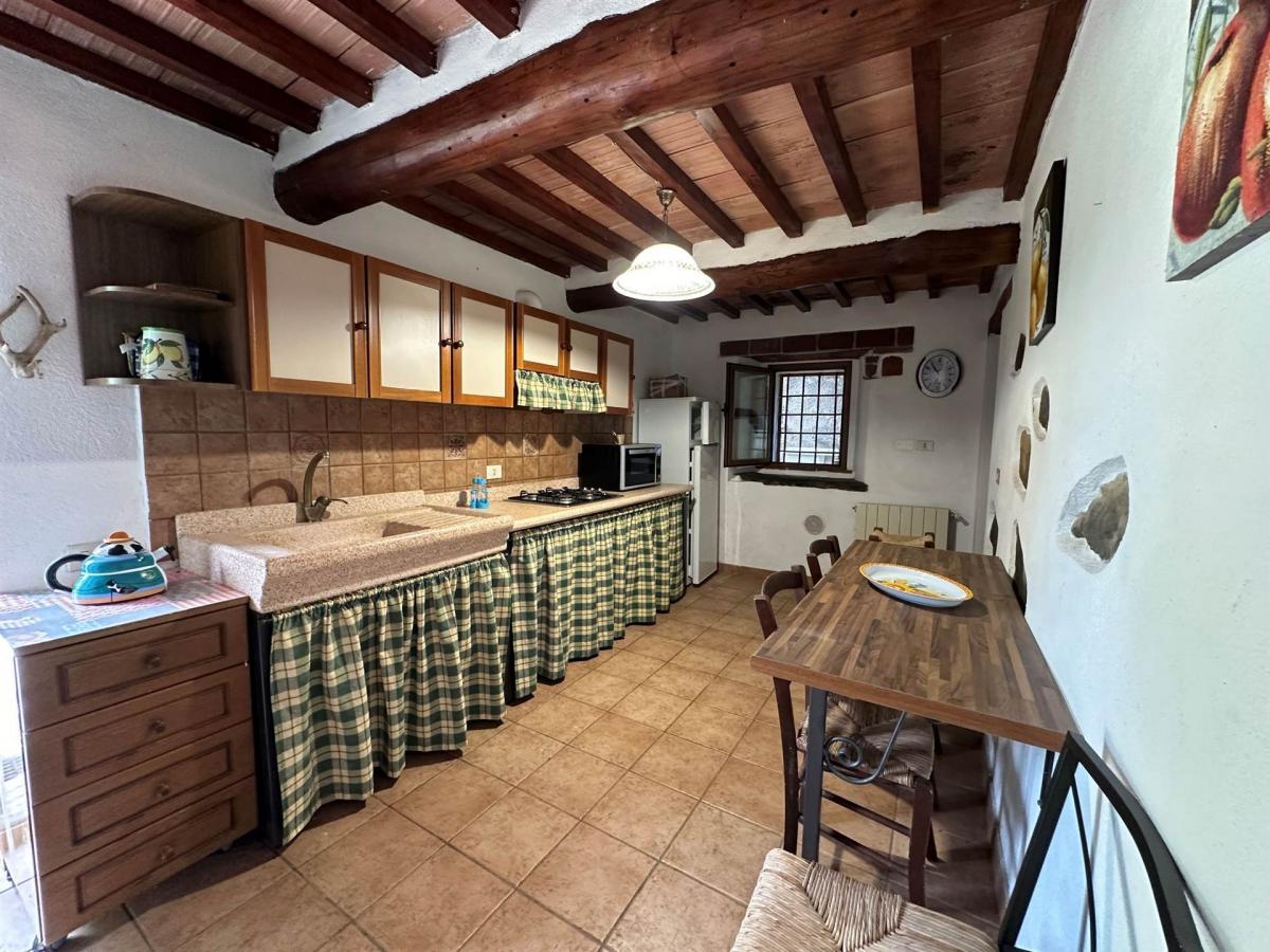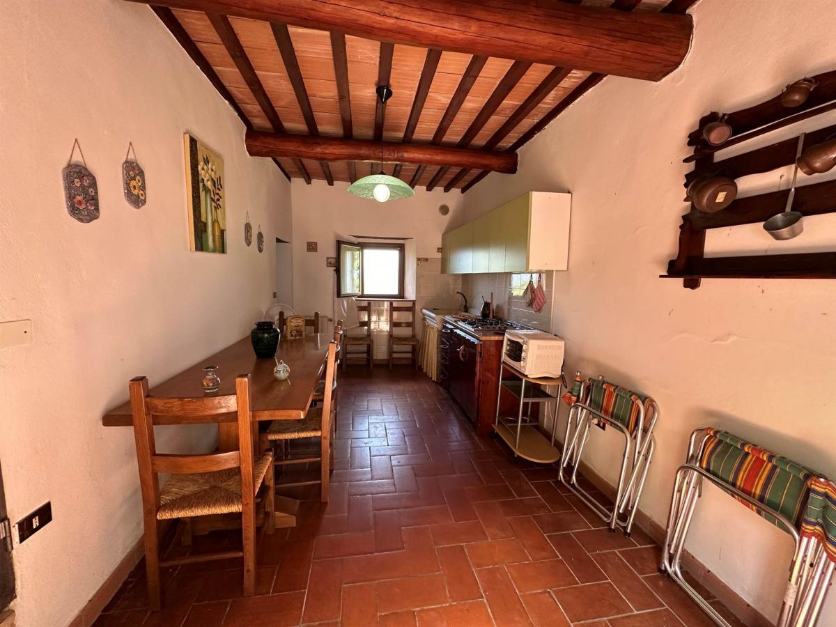 The first unit includes, on the ground floor, a living room, a kitchen, and a bedroom with bathroom. On the first floor, there is another bedroom, a bathroom, and a panoramic terrace overlooking the countryside. The second unit consists of a kitchen on the ground floor and, on the upper floor, a living room, one double bedroom, one single bedroom, and a bathroom. interiors are warm and welcoming, featuring typical Tuscan style elements such as wooden beams and traditional finishes.