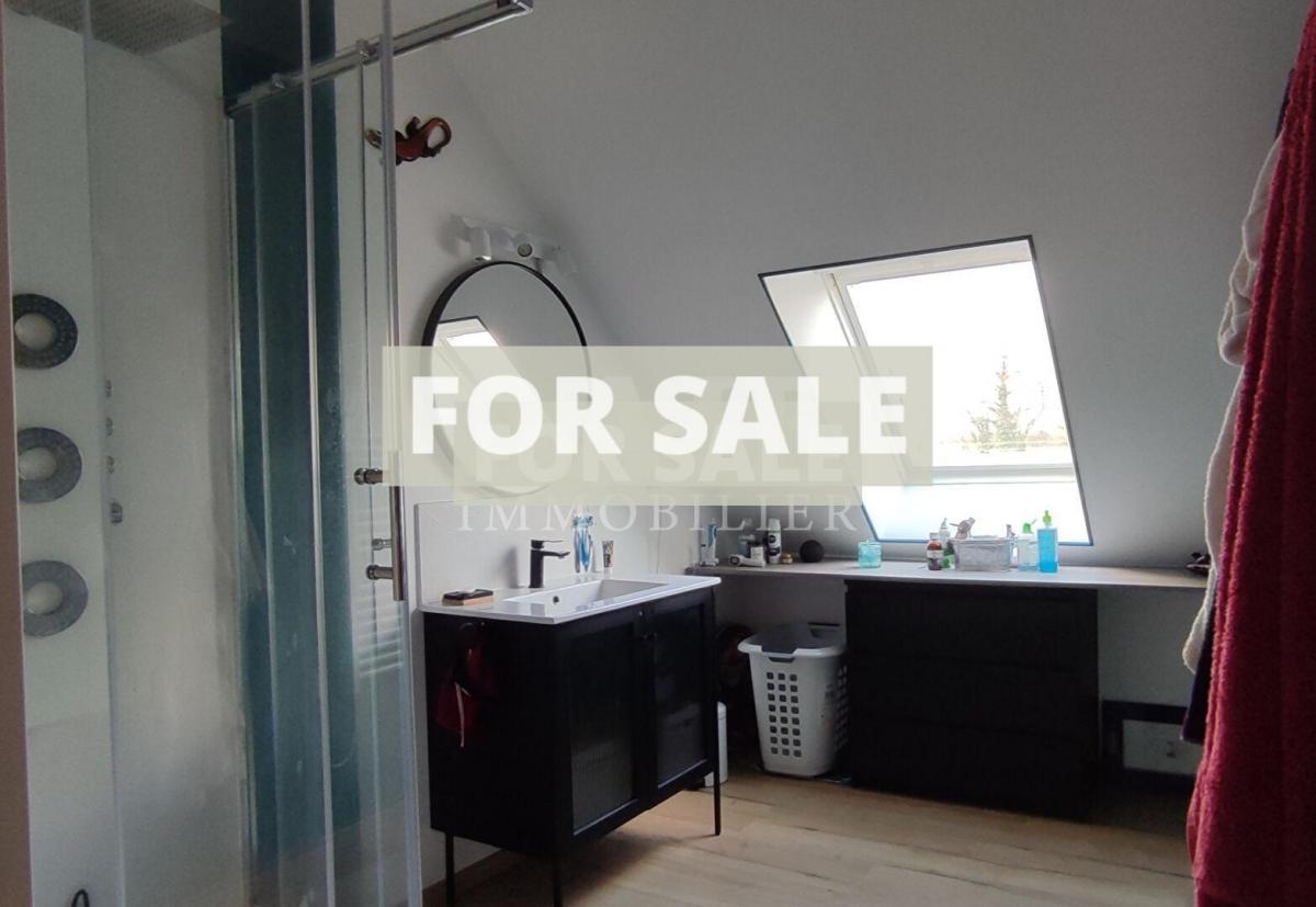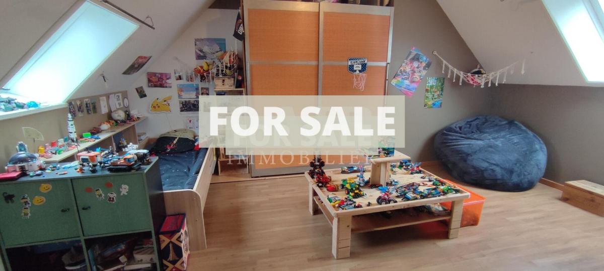 Upstairs, a large landing offers the possibility of creating a fifth bedroom or an office space. Three spacious bedrooms (25 sq m, 21 sq m, and 14 sq m), a hallway with built-in wardrobes, a WC with washbasin, and a recently renovated shower room complete the layout.