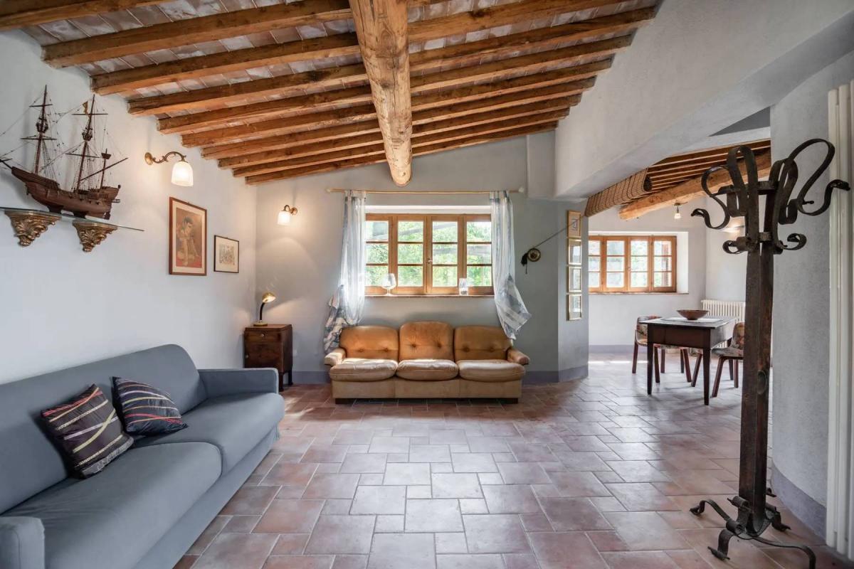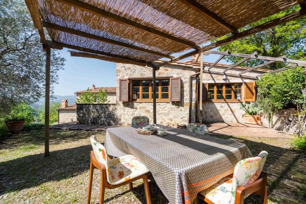 Adjacent to the apartments is a 46 sqm studio complete with a bathroom, terrace, and a charming wood-burning oven. Two outbuildings (a 58 sqm tower house and a 15 sqm annex) remain to be renovated, offering additional potential. The property also includes two garages totaling 44 sqm and a 7,500 sqm garden. The garden features peaceful relaxation areas, panoramic viewpoints, and over 100 "Olivastra Seggianese" olive trees, known for producing high-quality olive oil. Additionally, fruit trees such as apricot, cherry, sour cherry, and quince add to the natural charm.