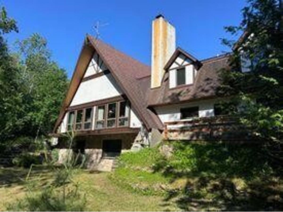 Unique home for sure! This chalet style home offers a Tudor exterior. Setting a 70 acre private paradise. The home offer 3 bedroom and 4 bathrooms along with an extended loft area over looking the living room. Solid surface counter tops in a nicely laid out kitchen that over looks the living room. You will enjoy fabulous views from each window and also enjoy the coziness of the wood burning fireplace on the main level. The lower level doubles as extra living space and can have multiple uses. There is an old air strip on the property as well as 2 older buildings and an outhouse!