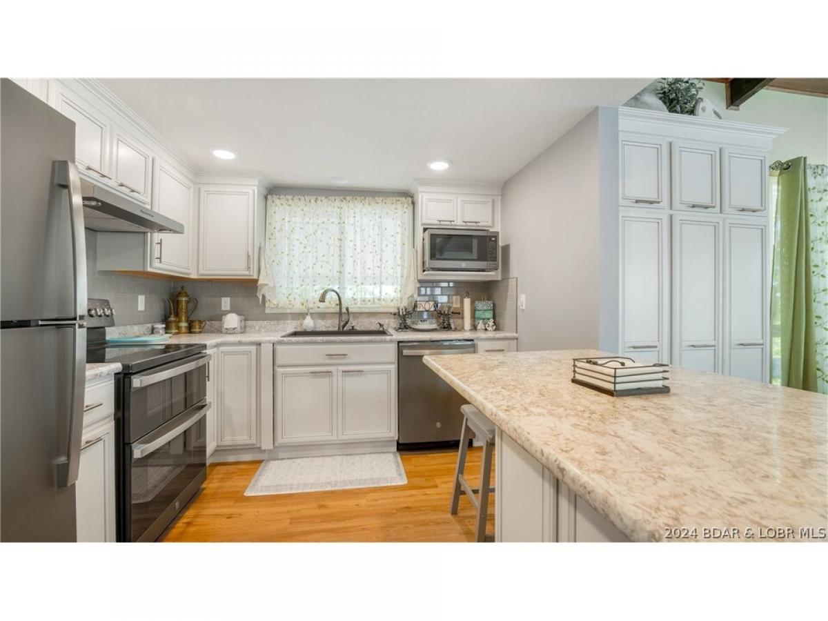 Dynamite fully updated lakefront home on drop dead gorgeous point on the 11 mile mark. Enjoy the panoramic non congested views and privacy form your very own Iconic point property. You will love the light and bright open floor plan this home offers main level living with tons of space for friends and family to spread out on both floors. Lovely kitchens on both levels only enhances this feature. Large ozark barge dock is included . This truly is a highly desirable unique property held in the same family for decades come take a look. I WOULD GUESS YOU WILL NOT BE DISAPOINTED.