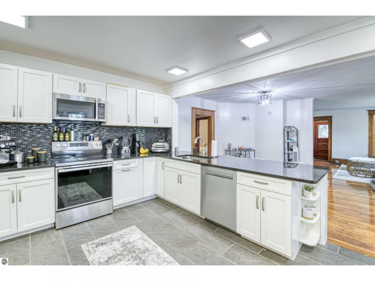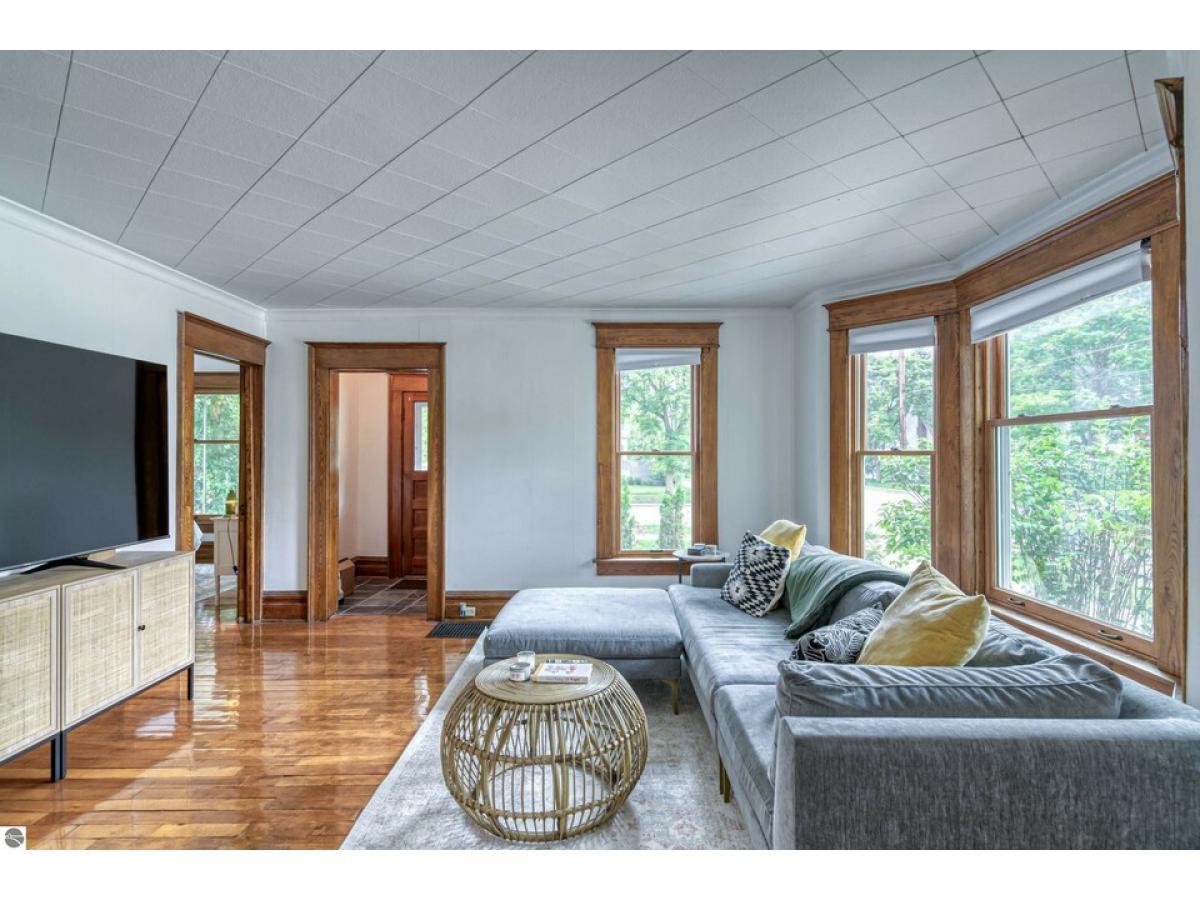 This Charming and well cared for Victorian located in Central Neighborhood of Downtown Traverse City could be your single family home, a duplex with rental income or both, live in one and rent the other. Very well cared for offering two separate living spaces with a total of 2,109 SF with the main level offering a bright and airy open floor plan, 3 bedrooms, 1 full bath, newer kitchen with newer appliances and pantry, refinished wood flooring and newer windows, rents for $2,100 monthly. The upper level has 2 bedrooms (one is non-conforming) family room, kitchen with newer appliances, counter tops and a dining space, rents for $1,900 monthly. The unfinished lower level offers extra storage space while the large corner lot offers extra outdoor play space and a 2 car insulated garage. Conveniently located just minutes from churches, local beaches, marinas, trails, boutique shopping, Munson Hospital, wineries, breweries and more. This downtown gem is a must see!