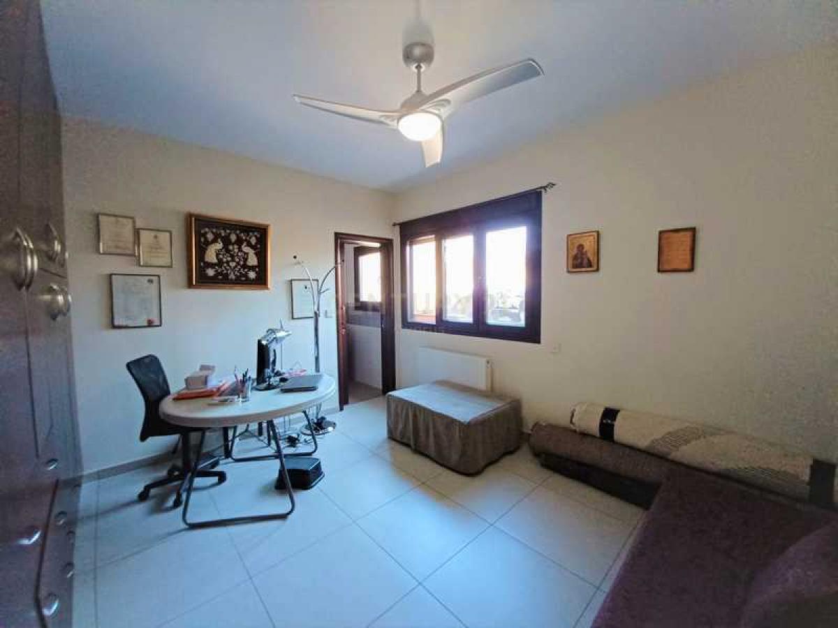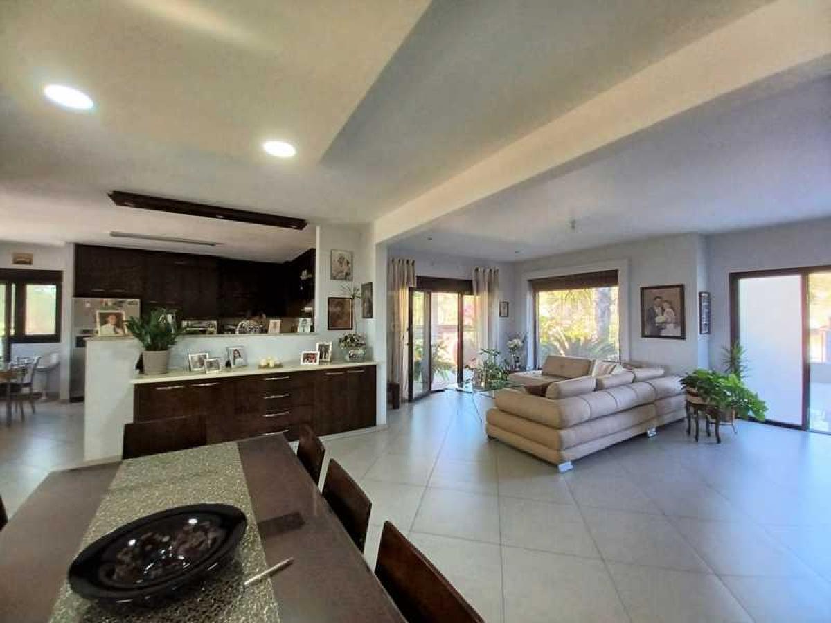 This stunning detached house is located in Sotira village of Limassol in a quiet, pine-covered area. Stunning view of the mountains and sense of forest. Its interior space is 290sqm apart from the covered verandas and it has two floors.It is surrounded by a large courtyard with paving, beautiful garden and synthetic grass, covered and uncovered garage along with huge pergola. There are 5 spacious bedrooms in which the 2 are in the ground floor and en-suite bathroom. The house consists of 4 bathrooms, warehouse, attic, guest WC and separate laundry room, a big open plan kitchen, 2 dining areas, 2 living room areas, and fireplace. It also includes heat-depositing double glass windows, central and solar heating, water pressure system, internet access, air conditions and ceiling fans. This beautiful house has details of granite as in the entrance and internal steps, kitchen and laundry worktops and in all the WC and bathrooms. It enjoys a beautiful view of the sea of Episkopi, only a 2 minute drive from the highway and amenities of the village and was constructed by Canadian wood.