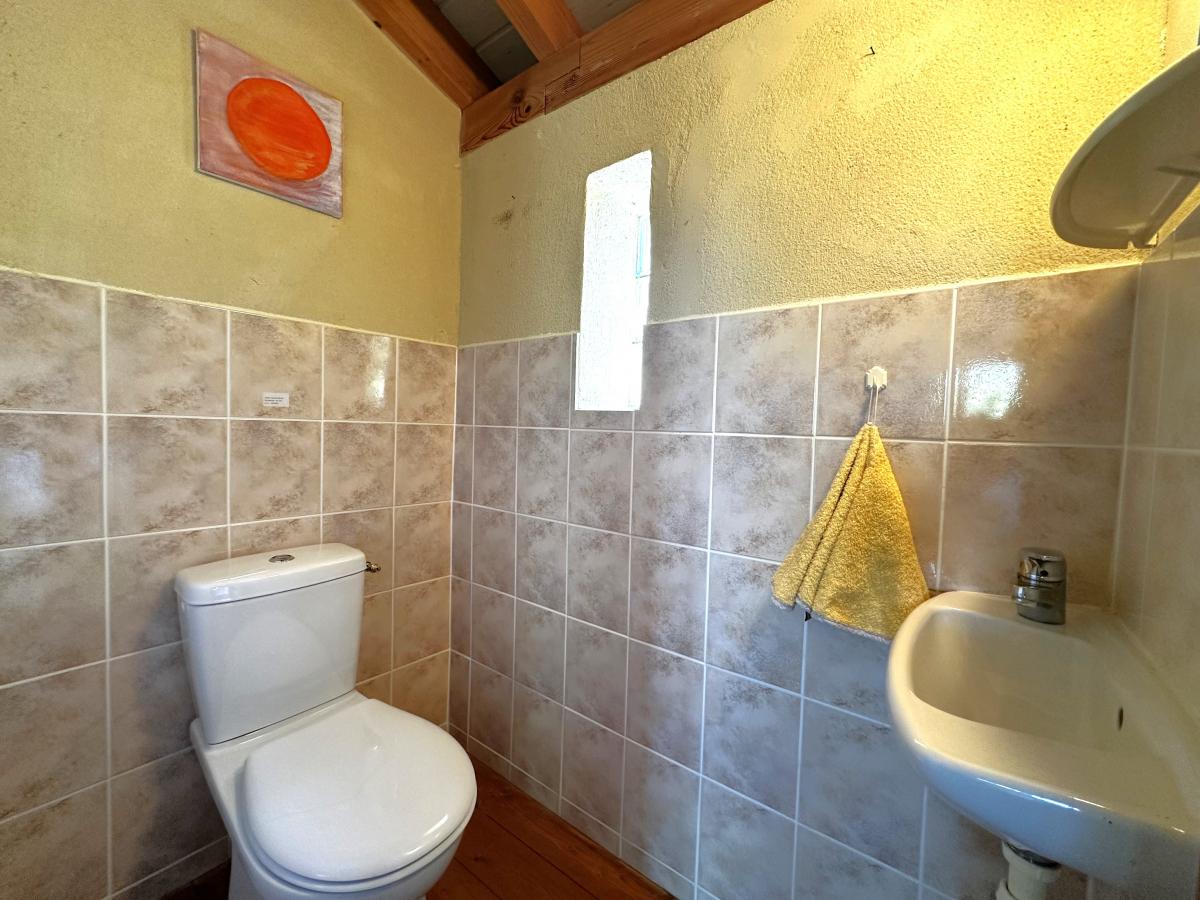 REDUCED in price - A pretty stone house with country views. Currently with 2 first floor bedrooms and a large 40m2 Mezzanine which could easily be divided to create additional bedrooms if required. Both bedrooms have direct access onto a balcony with panoramic country views across surrounding farmland. On the ground floor is a spacious open plan living/dining room with a feature stone fireplace, kitchen, bathroom & WC.Outside is an outbuilding with a shower room and workshop.