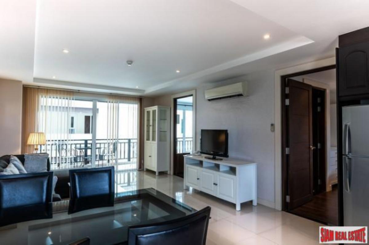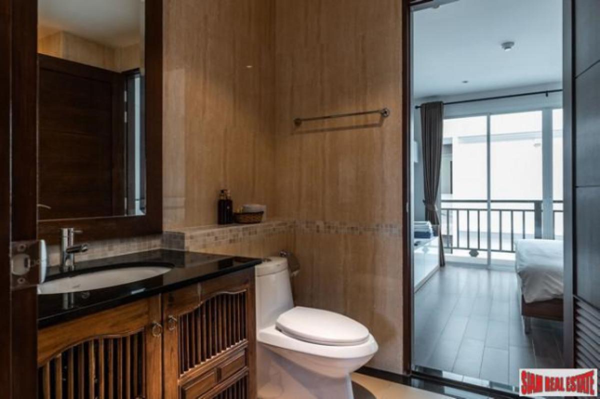 These two bedroom, two bath condos have been spaciously designed with quality fittings and comes with a fully equipped kitchen. The units feature private balconies with outdoor seating. These large units are decorated with Thai-style prints and modern furnishings. Comfortable lounge areas have a sofa set and flat-screen Satellite TV.
