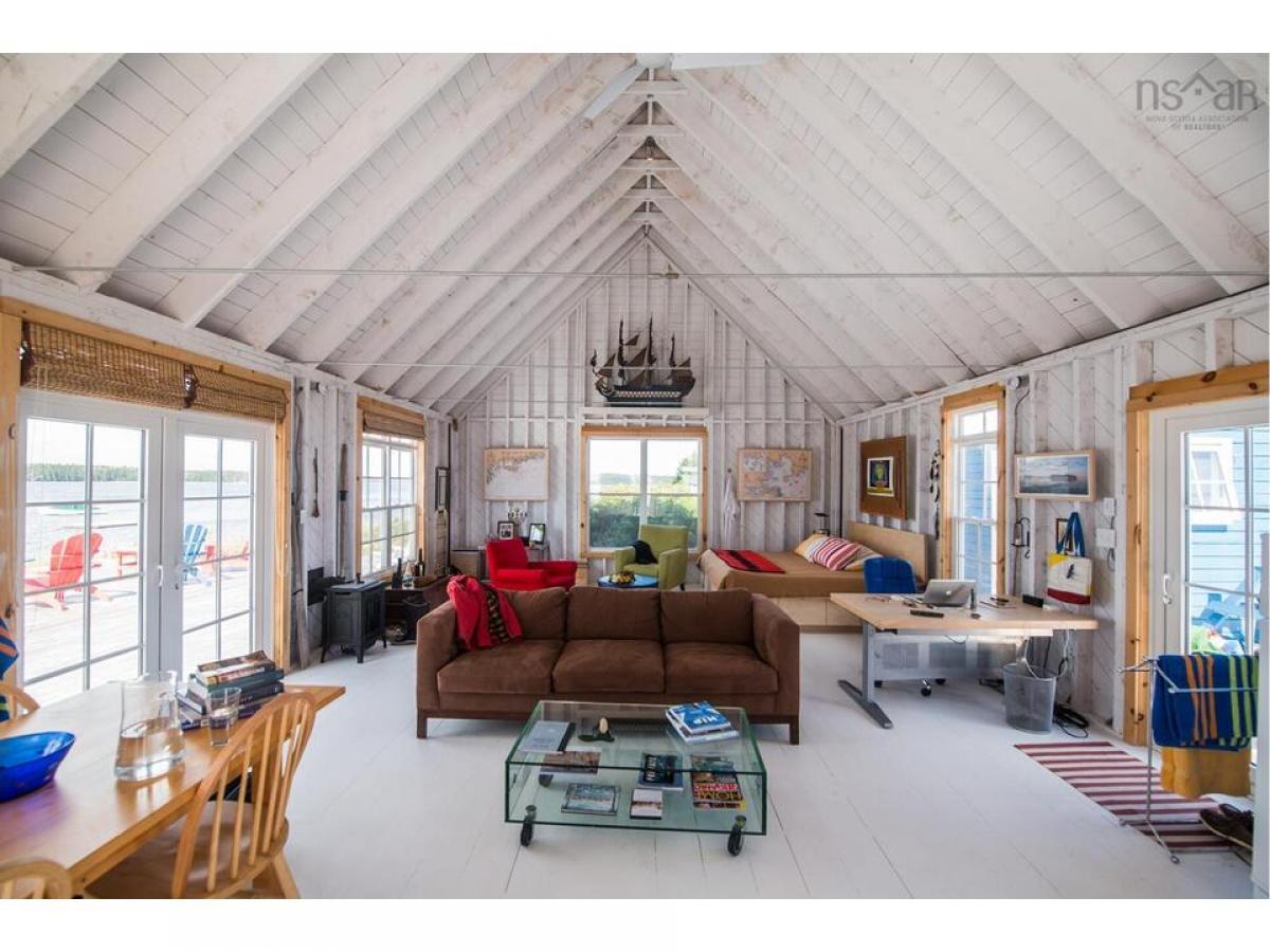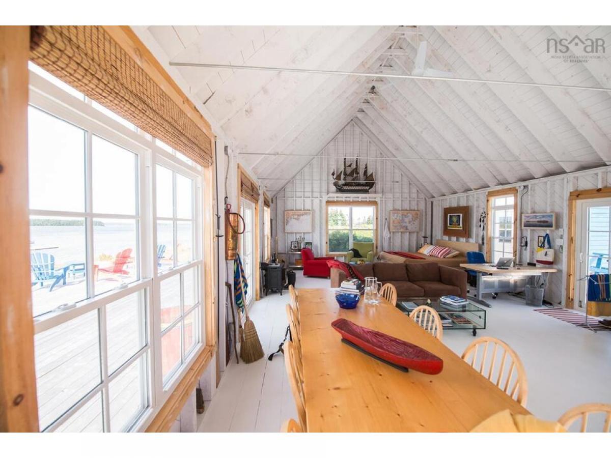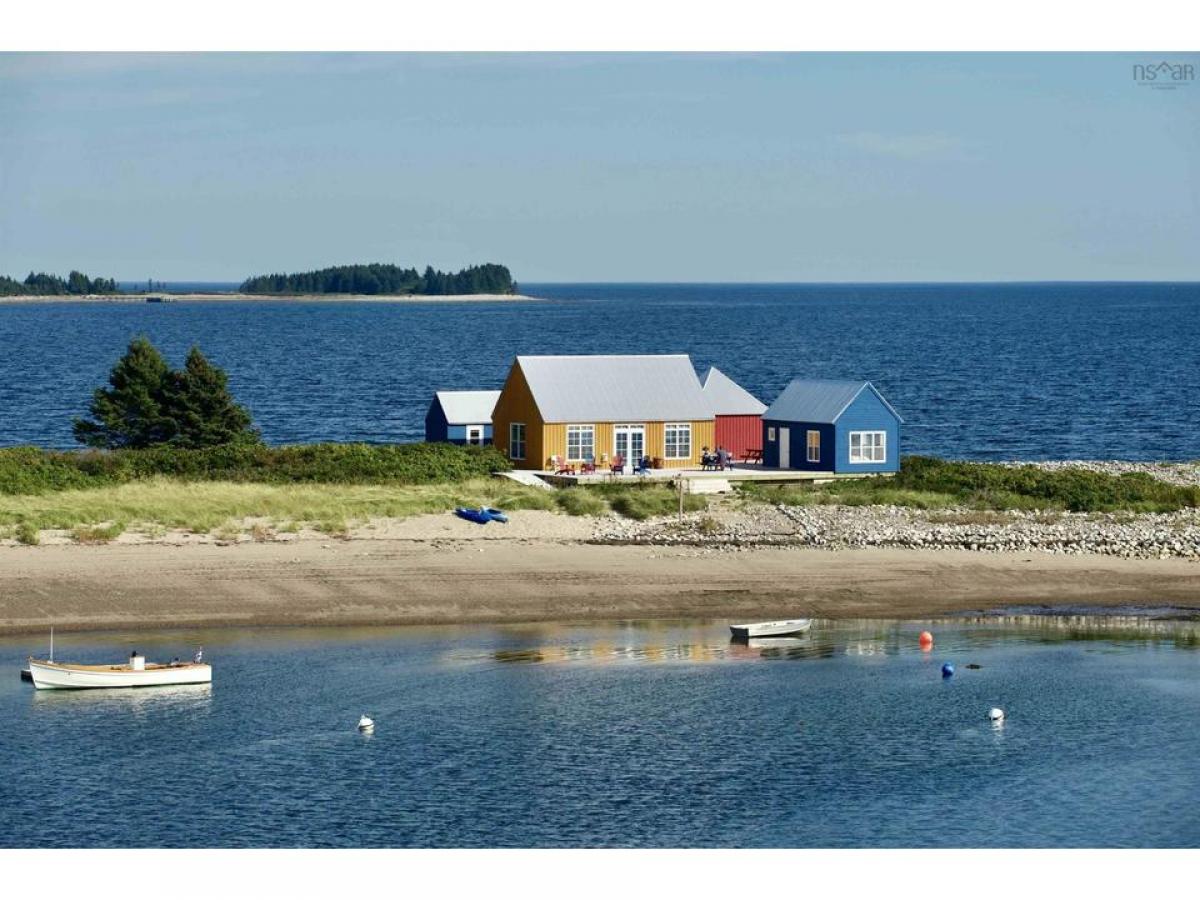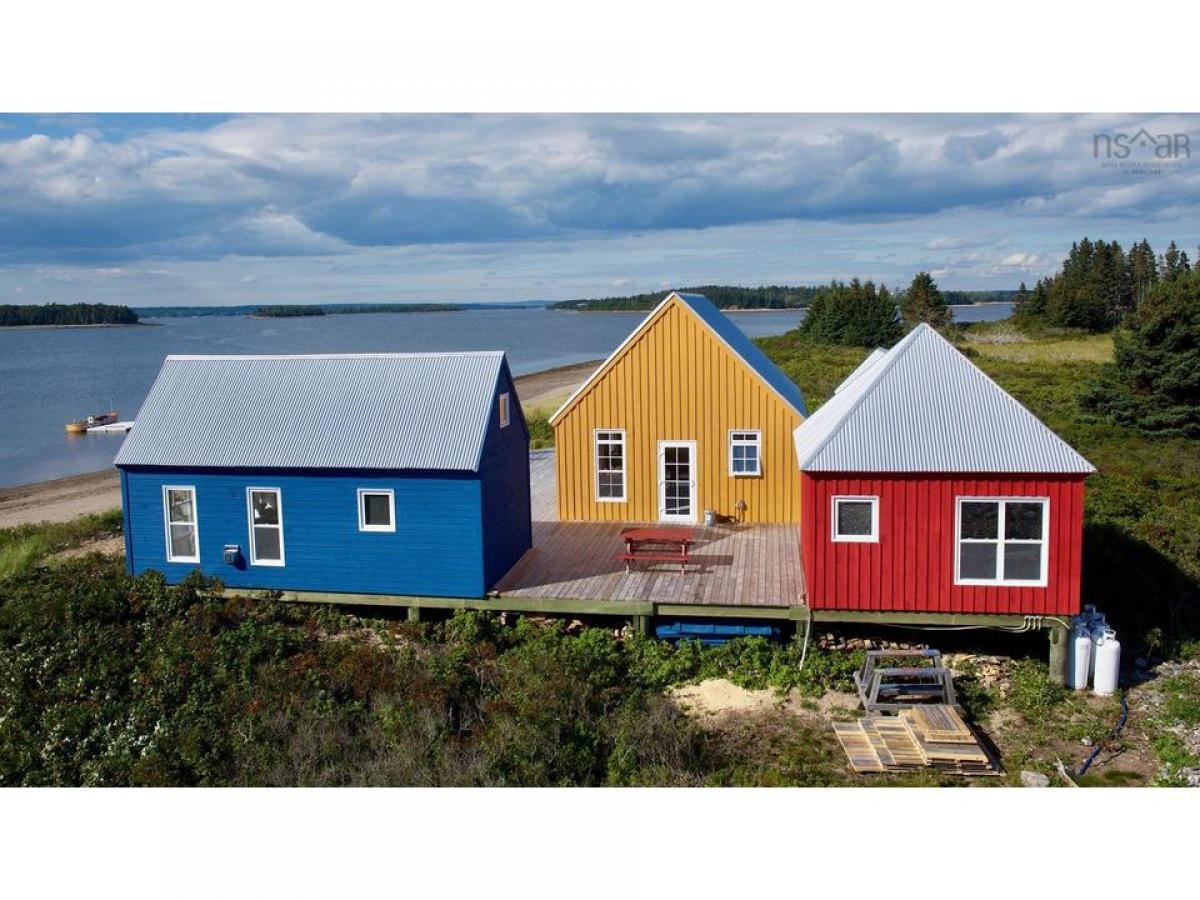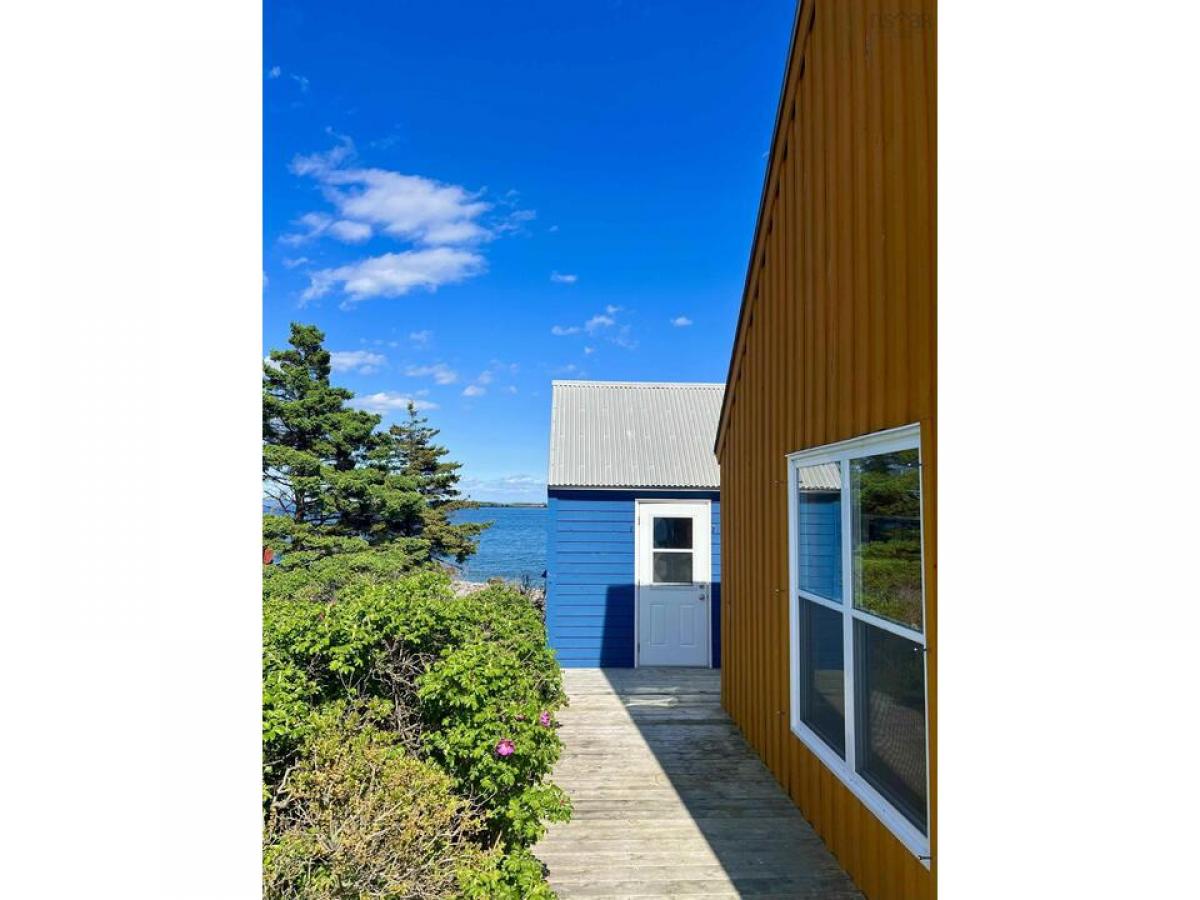 This property is exempt from Foreign Buyer Ban. Offering a perfect blend of civilization and nature, Spectacle Island is minutes from the mainland and showcases close to ten acres of private oasis. Over four hundred feet of sandy beach stretches along the western shore, setting the stage for ultimate sunsets. The incredibly rare landscape features a rich thicket of rose hip bushes rising behind the beach, and the two healthy tree-covered shady sheltered forest ends (55 and 75 feet above sea level) forming the lenses of this pair of giant spectacles. As if the deck was dropped from the sky, the 60 x 60 platform serves as a raised surface to hold four structures, each with their own purpose. The concept was threefold; delineation from the precious natural environment, a structural deck anchor (36 beefy wood pilons, driven 12 feet into the ground) leaving enough space for a storm surge to pass underneath, and orientation providing island and sea views out windows from any side. The cluster of âfish storeâ style cabins finished in primary colours (red, blue and yellow) has turned into a destination beacon for sailors as well. Eight years ago, the cabins were completed with the main building âThe Saloonâ offering a fully equipped kitchen, large dining area for entertaining, living room with fireplace and a sleeping area. Two additional sleeping cabins, âBunk Houseâ and âSquare Houseâ, both with fireplaces and a storage/amenity cabin has a washroom, outdoor shower, washer and dryer complete the property. There is just under 1400 square feet of living space in total. Many attributes make this property a truly rare offering; the most magnificent sunrises and sunsets, sea air breezes so no chance of bugs, geographically, the island sits out of the foggy part of the bay, and due to shallow and protected waters on the western shore, the water temperature in the summer can reach a comfy 72 degrees Fahrenheit and the air can get into the high eighties on a sunny day.