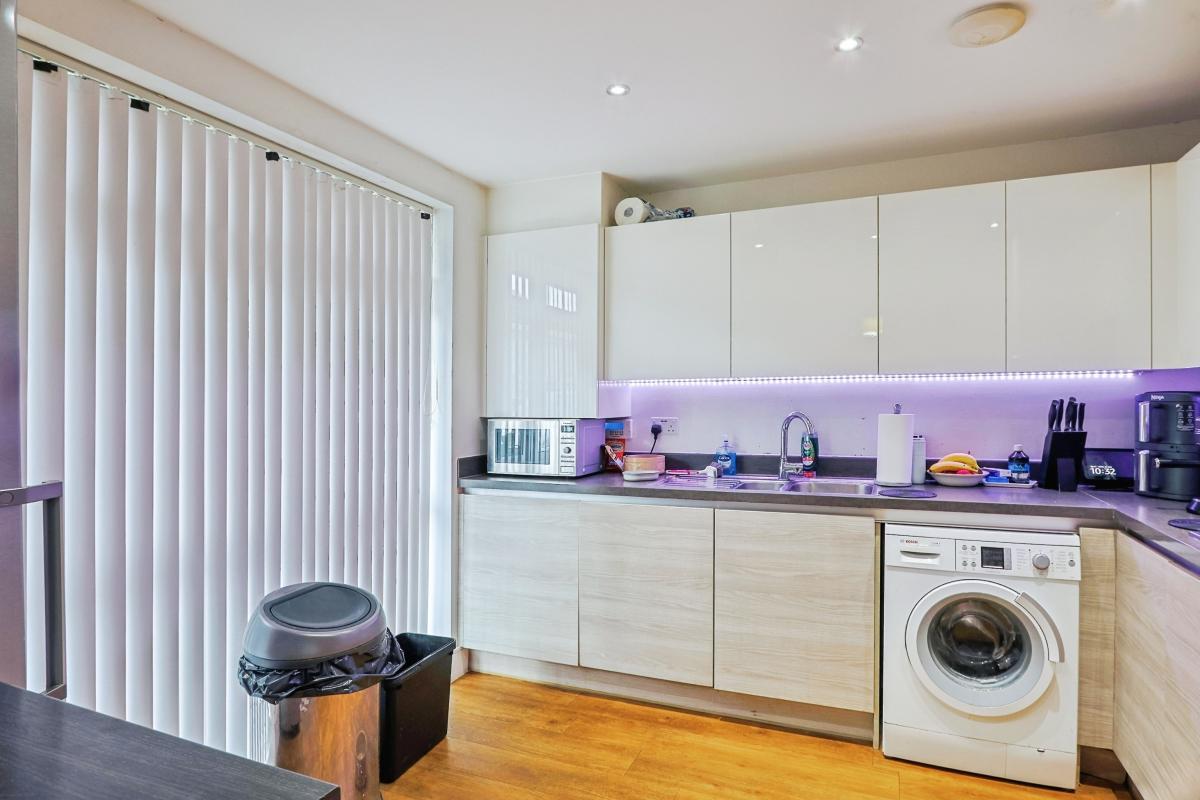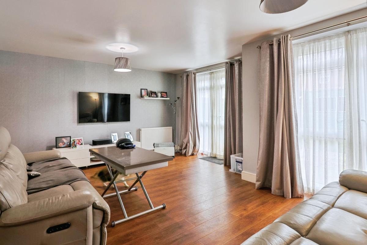 The ground floor opens with a welcoming hallway leading through to a contemporary kitchen fitted with sleek units, integrated appliances and ample worktop space, ideal for everyday living. To the rear, the main living area is generously proportioned and filled with natural light, with direct access to the garden creating an easy flow between inside and out. A convenient cloakroom completes this level.