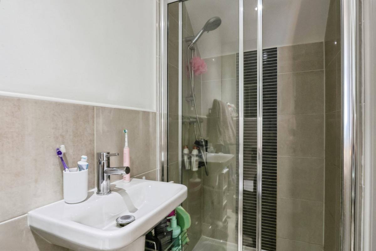 The first floor provides versatile accommodation, well suited to family life or home working, with rooms enjoying good natural light and a modern family bathroom finished in clean, neutral tones. A balcony adds an attractive feature, offering an elevated outdoor space to enjoy fresh air or morning coffee.