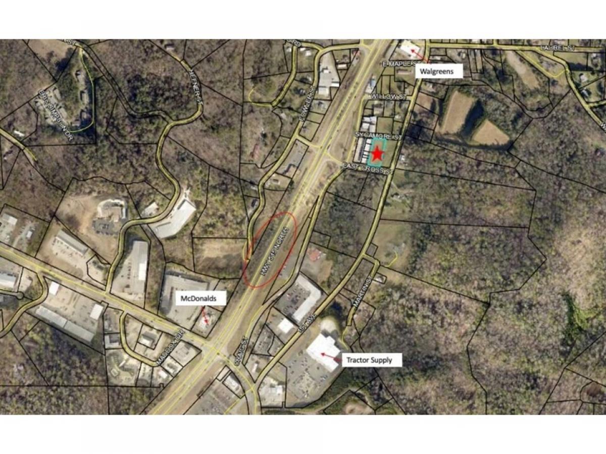 Commercial Lot in the heart of East Ellijay. HIGH VISIBILITY from Highway 515. This interior lot is adjacent to a strip-shopping center. Paved road frontage on 2 city streets; the 0.45 acre vacant lot fronts Sycamore Street and East Cross Street. Public utilities are available. No city taxes!