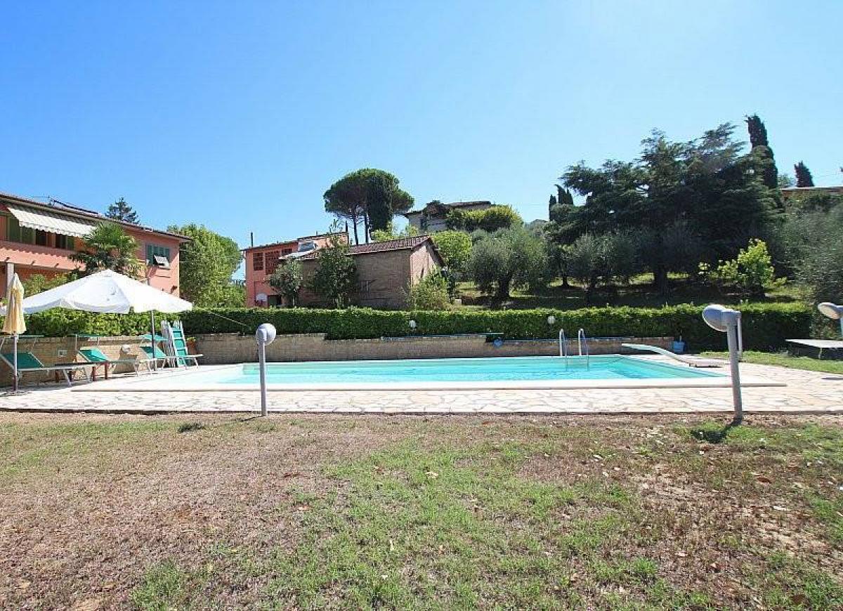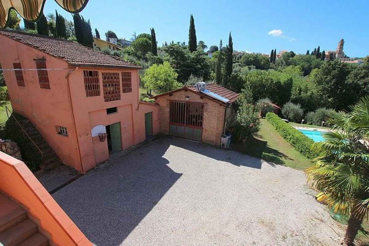 This stunning farmhouse with a barn and swimming pool is for sale in the municipality of Terricciola, in the renowned Tuscan countryside of the village of Soiana. The property spans 4 hectares of land, including a pine forest, a plum field, an olive grove with 150 olive trees, and cherry trees. The house is located just 500 meters from the village of Soiana and 5 km from Terricciola, offering all essential services. The location is strategic, with easy access to main communication routes, Pisa airport 35 minutes away, and the coast in 40 minutes.