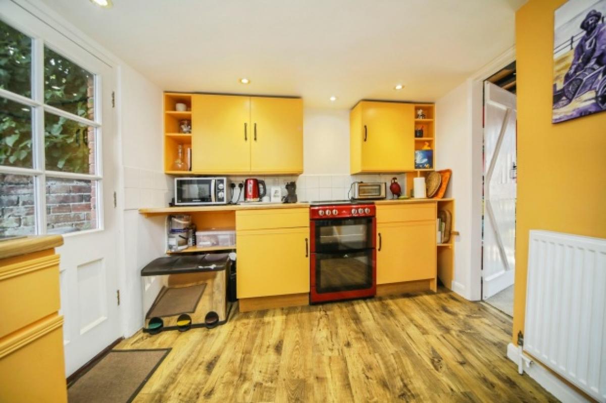 Believed to have once formed part of Whales Haven's east cross wing, the cottage showcases traditional timber-framed architecture beneath a tiled roof, with a rendered front and mellow brick rear. Inside, original features such as exposed ceiling timbers and a central chimney hint at a former Inglenook fireplace. A stable-style door opens into a cosy sitting room with built-in storage on either side of the chimney breast and leads into a well-equipped kitchen, complete with fitted units, roll-top worktops, and space for appliances. French doors open to a private, walled courtyard garden - ideal for evening sun and quiet outdoor dining.