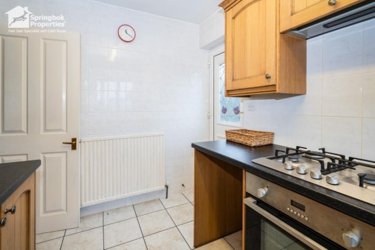 Upon entry, a central hallway connects all living spaces, offering access to a lounge area that leads directly into the conservatory, enhancing the feeling of flow and light throughout. The conservatory overlooks the enclosed rear garden and makes a relaxing setting to enjoy the outdoors all year round. There is also a separate dining room and a fitted kitchen with tiled splashbacks, timber-effect cabinetry and integrated cooking appliances, along with side access for convenience.