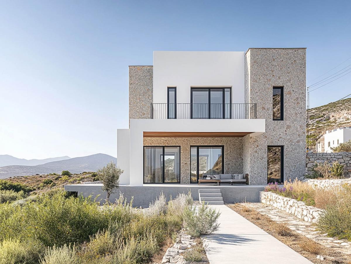 The villa will be built on a private 520 m2 plot in the scenic part of Timi village—a place where time slows down and priorities shift towards quality, seclusion, and comfort. Inspired by modern Mediterranean principles, the design features natural stone, crisp white facades, thoughtfully planned terraces, and a harmony of vertical and panoramic windows. Everything here is designed to evoke inner and outer balance.