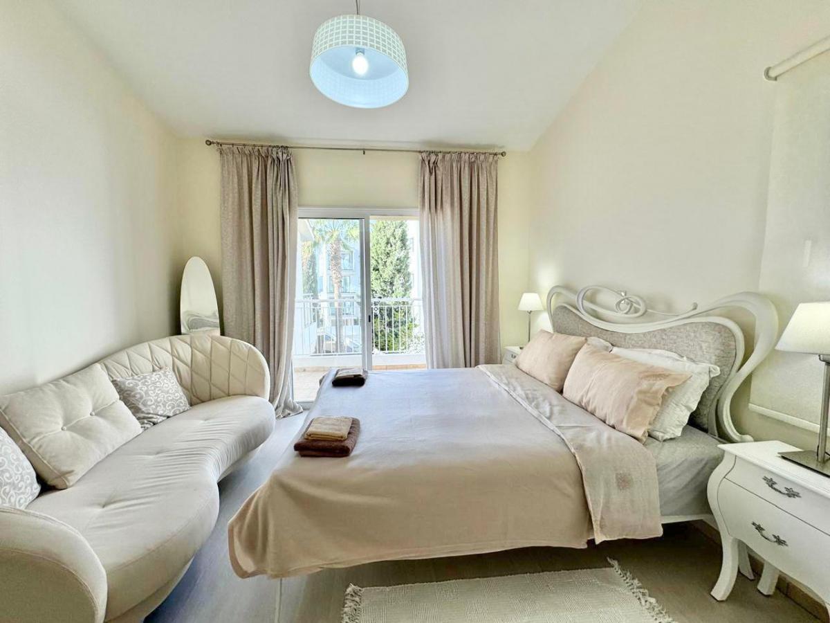 The architectural style is classic Cypriot — natural stone finishes, soft ochre facades, archways, and traditional red-tiled roofs blend harmoniously with the landscape, like an old watercolor brought to life.