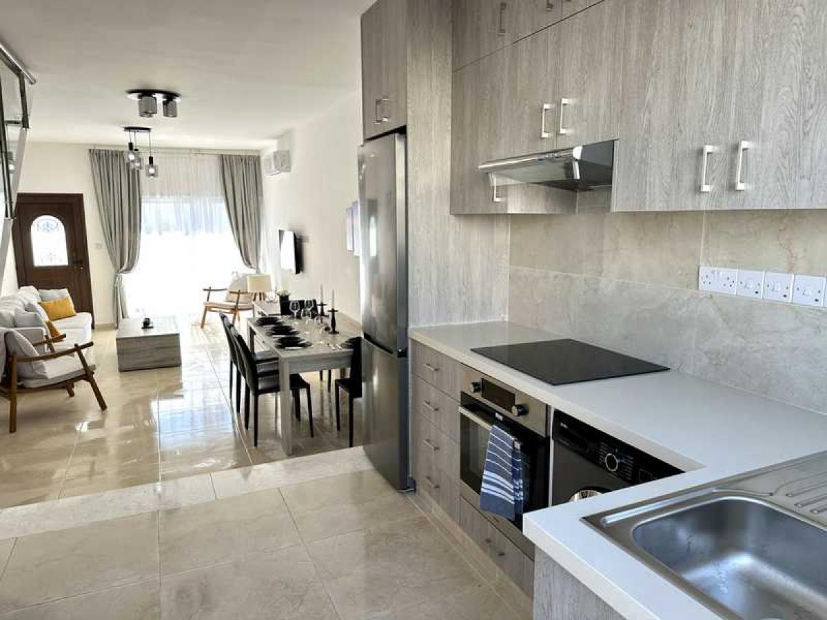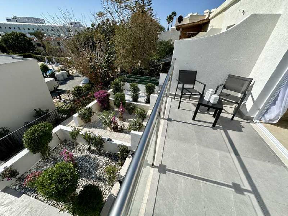 Kings Beach Townhouse D4This townhouse is located in the developing area of 'Tombs of the Kings'. With carefully designed features, such as marble staircases, Italian tiles, granite kitchen worktops, generously sized bedrooms, sea-facing balconies, bathtubs and open plan living room areas, our townhouse delivers an unmistakable sense of unique Mediterrenean living to even the most demanding of residents. This townhouse is ideal for a permanent residence, an investment, or a holiday home. It is a fully renovated, refitted luxurious two-level house, which is adjoined yet has independent access, 2 verandas and mature gardens from either side of it, contains 2 bedrooms, one of which has a Kings size bed and the other two twins, both having modern, leatherette beige headboards 2 bathrooms, A/Cs and wall-mounted TVs in all rooms.