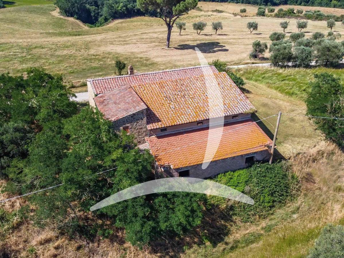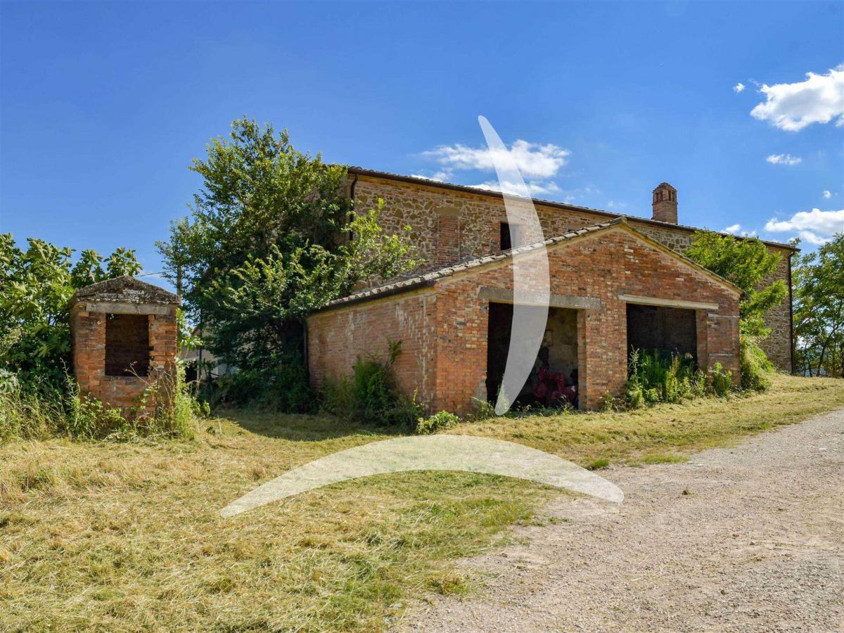 Nestled in the rolling Tuscan hills near the charming village of Montefollonico and close to Montepulciano, this beautiful farmhouse offers approximately 450 sqm of space to restore and transform into a stunning residence or boutique hospitality project. Spread over two floors with separate entrances, the layout is perfect for creating multiple living units or a main home with guest apartments. The central core of the building is the oldest part, full of rustic character, while a detached double garage and modern agricultural storage rooms complete the ensemble. Though the interior requires full renovation—including floors, systems, and finishes—the stone structure is in good condition and the roof has already been recently repaired, making it an ideal canvas for any restoration project.