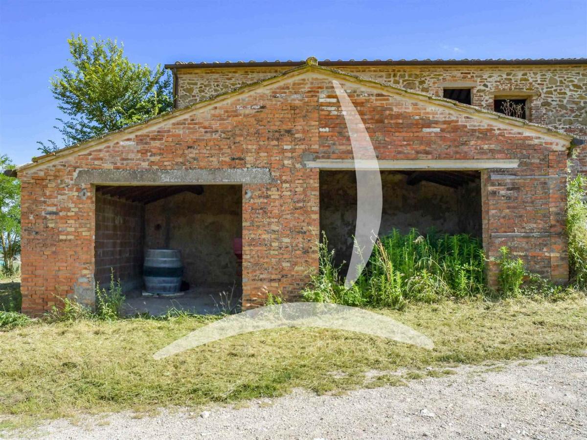Nestled in the rolling Tuscan hills near the charming village of Montefollonico and close to Montepulciano, this beautiful farmhouse offers approximately 450 sqm of space to restore and transform into a stunning residence or boutique hospitality project. Spread over two floors with separate entrances, the layout is perfect for creating multiple living units or a main home with guest apartments. The central core of the building is the oldest part, full of rustic character, while a detached double garage and modern agricultural storage rooms complete the ensemble. Though the interior requires full renovation—including floors, systems, and finishes—the stone structure is in good condition and the roof has already been recently repaired, making it an ideal canvas for any restoration project.