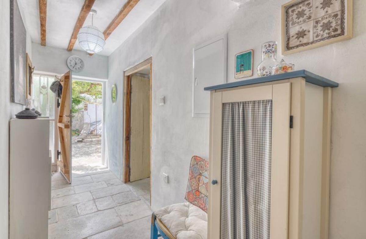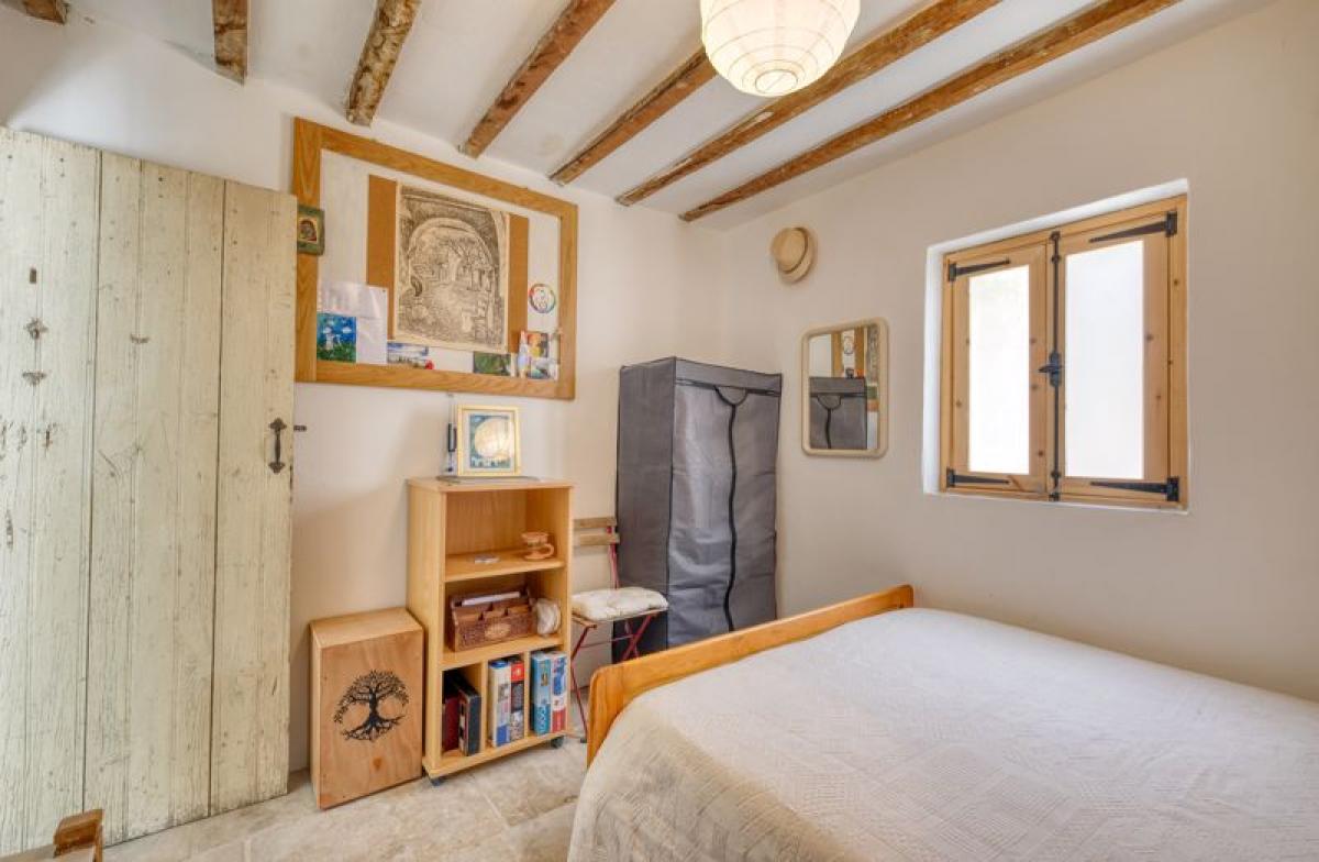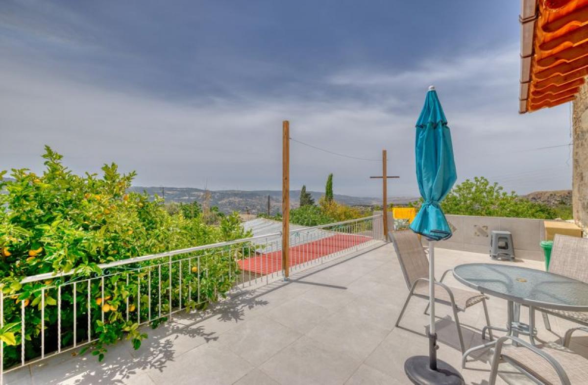 Built with local stone and timber, the home reflects the island's classic architectural style, featuring thick stone walls, and a red-tiled roof that blends harmoniously with the surrounding landscape. As you enter the property you are met with a hallway, leading to 2 double bedrooms and a family bathroom. The internal staircase will lead you to the first floor with spacious open plan kitchen with diner and lounge, from where you will find an extensive balcony with mountain and sea views, with access provided by two patio doors. From the balcony, you will find external steps leading you down to a traditional courtyard featuring a garden boasting grape vines, lemon, apricot and pomegranate trees. There is also a large 15m2 outbuilding currently used as a storage/workshop and an outdoor kitchen with plenty of seating area available to enjoy quiet mornings or alfresco dining.