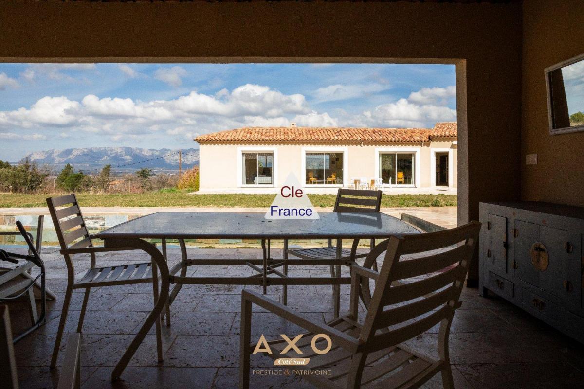 TRETS - ENSEMBLE IMMOBILIER - T8 - PISCINE - GARAGE - POOL HOUSE - VUE SAINTE VICTOIRE - À Trets, se dresse un veritable ecrin immobilier de 220 m2, ou l\'harmonie entre l\'architecture et la nature cree un cadre de vie d\'exception. Du haut de ce domaine, la vue imprenable sur la majestueuse montagne Sainte-Victoire et le Mont Aurelien se deploie, comme une toile vivante, changeant au fil des saisons et des lumieres. Ce bien d\'exception s\'accompagne, en rez-de-chaussee, d\'un appartement T3 de 70 m2, parfait pour accueillir vos proches, offrir un havre de paix a vos invites ou meme envisager une activite de location saisonniere, dans ce cadre idyllique. L\'espace s\'articule avec harmonie, offrant d\'abord un appartement T3 independant de 70 m2, veritable cocon de serenite. Il se compose de deux chambres accueillantes, d\'une piece de vie baignee de lumiere, agrementee d\'une cuisine ouverte, et d\'une salle d\'eau elegante. À l\'exterieur, une belle terrasse et un jardin verdoyant viennent parfaire cet univers paisible, ou chaque instant semble suspendu dans le temps. La maison principale s\'eleve ensuite, avec une vaste piece de vie ouverte, propice a la convivialite, qui s\'ouvre sur une terrasse magnifique et sur l\'espace piscine, veritable invitation a la detente, se devoile comme un ecrin de fraicheur. La Master room, intime et raffinee, est dotee d\'un dressing spacieux et d\'une salle d\'eau elegante, tandis que deux autres chambres se partagent une salle d\'eau moderne, tout en subtilite. Le pool house, avec son atmosphere chaleureuse, abrite une chambre intime avec sa salle d\'eau, ainsi qu\'une cuisine d\'ete couverte. La piscine, sublime joyau orne de pierres de Bali, se fond parfaitement dans ce tableau, offrant une vue imprenable sur les monts environnants, comme un miroir de la nature. Un double garage, discret mais fonctionnel, complete cette propriete d\'exception, et la climatisation ajoute a ce lieu un confort sans egal. Un veritable havre de paix, ou la beaute et la tranquillite se melent en parfaite harmonie.