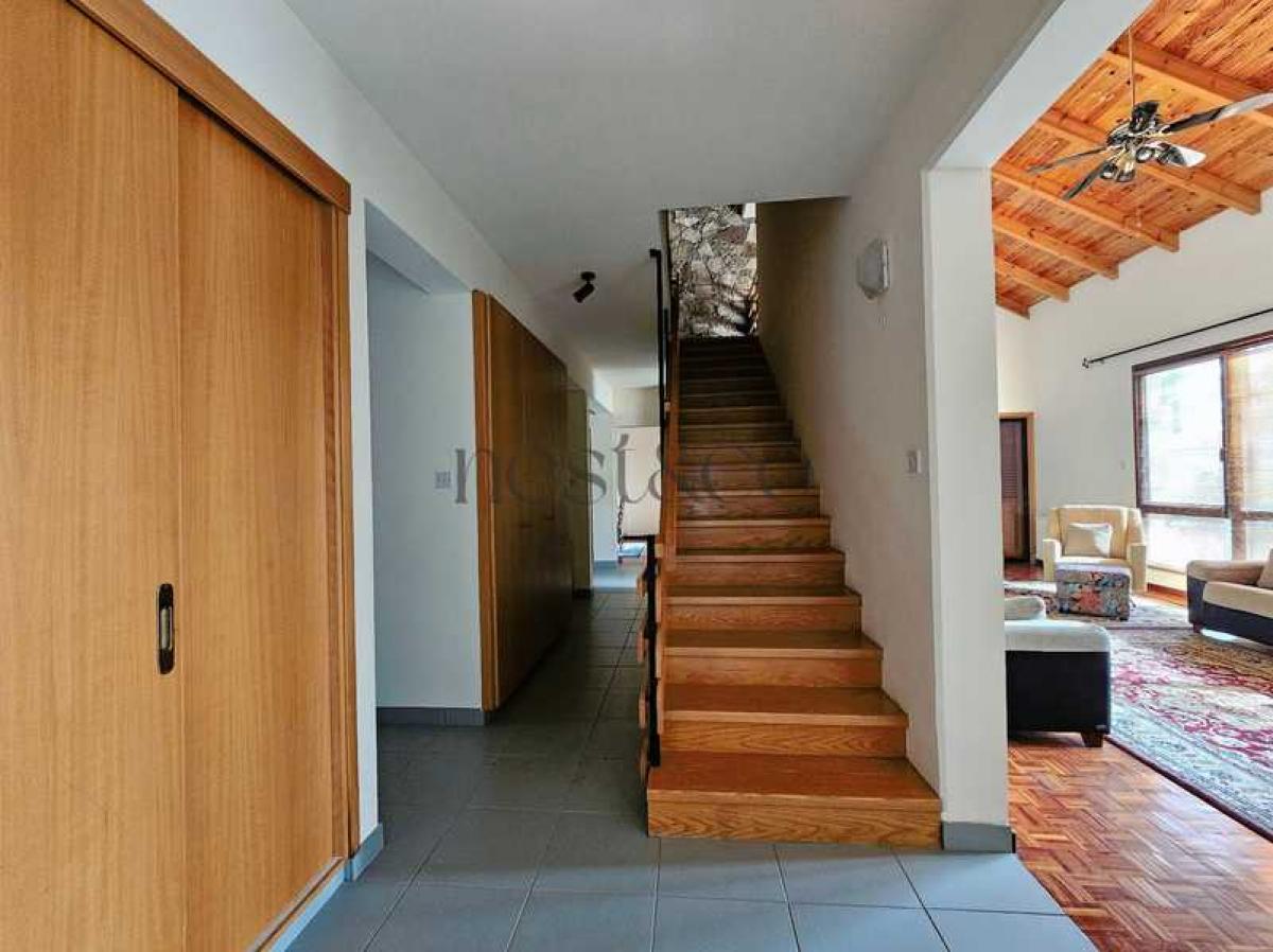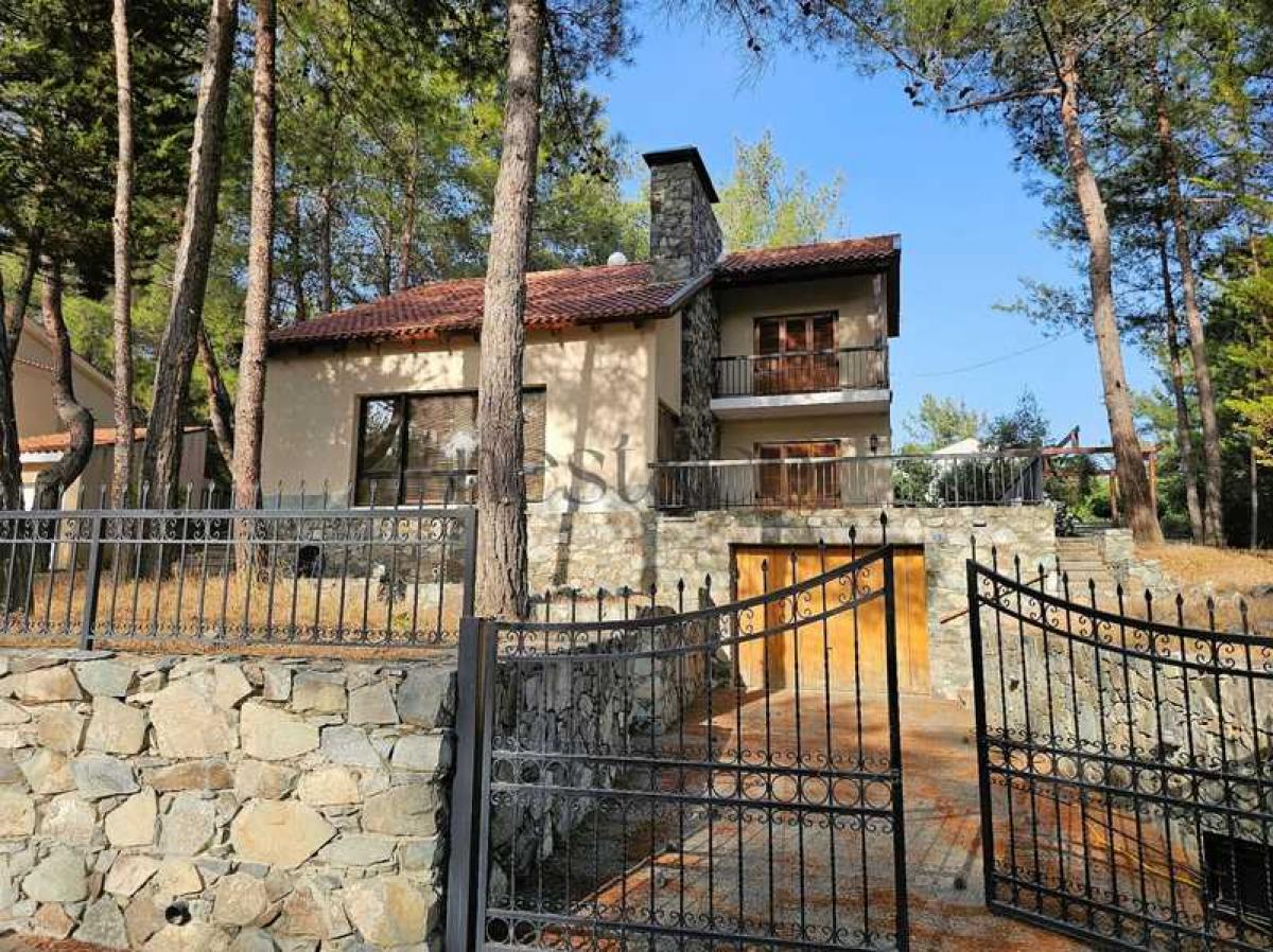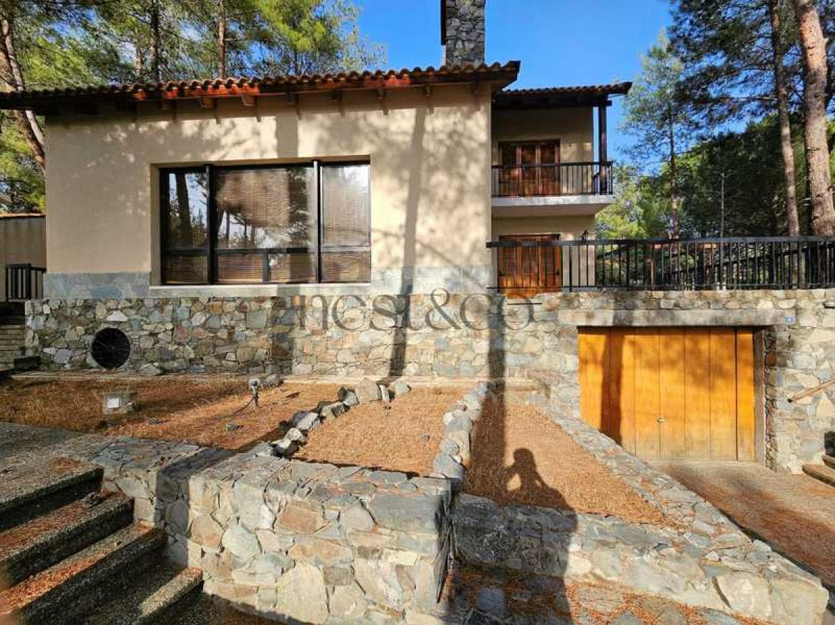 Imagine a place where nature wraps you in its quiet embrace, and every day is filled with the serenity of Trimiklini's pine-covered hills. This delightful 2-bedroom, 2-bathroom home, set on an expansive 1471-square-meter plot, is more than just a property - it's a retreat designed to celebrate the beauty of the Cyprus countryside. Built in 1993, this residence preserves a modern touch with its unique design spread across three levels, including a garage on the lower ground floor, a welcoming ground floor, and a comfortable first floor.Upon entering, you're welcomed into 225 square meters of internal space that combines comfort with functionality. The architectural layout is perfectly tailored to embrace the scenic surroundings, making every window a frame to a verdant, tranquil landscape. Pine trees envelop the property, creating a natural boundary that fills the air with the fresh, woody aroma of the forest, while the adjacent green area enhances the sense of privacy and openness.