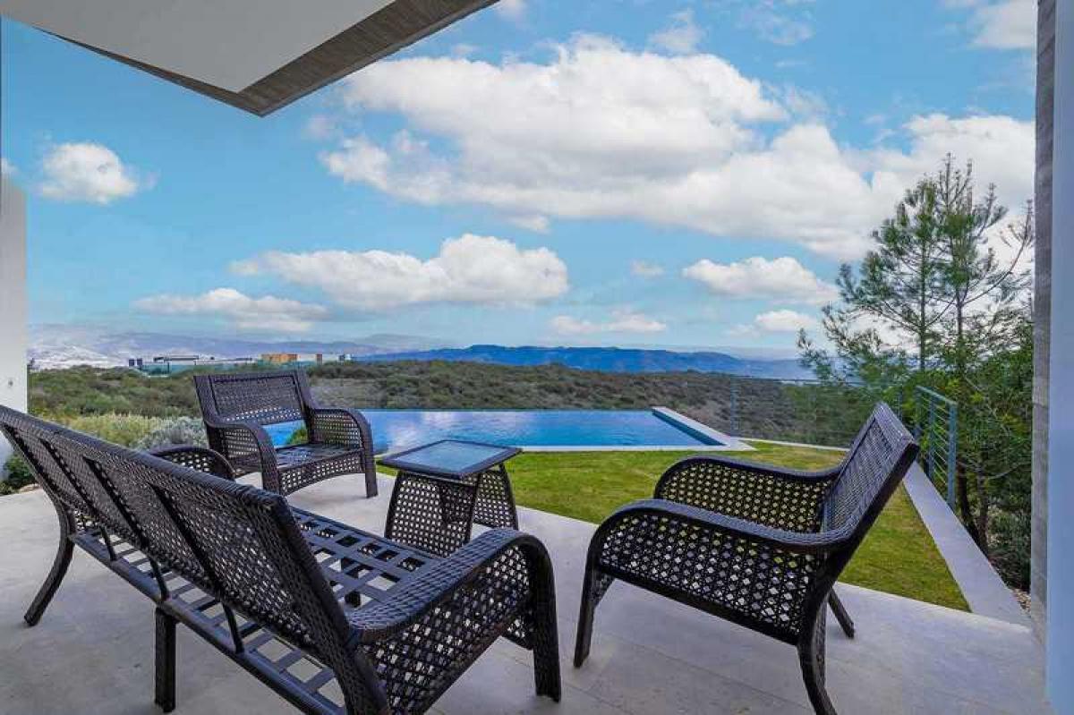 A private terrace, complete with a stylish seating area, provides an ideal setting for al fresco dining or simply basking in the serenity of the surroundings. The villa's design seamlessly integrates with nature, offering a seamless indoor-outdoor living experience.