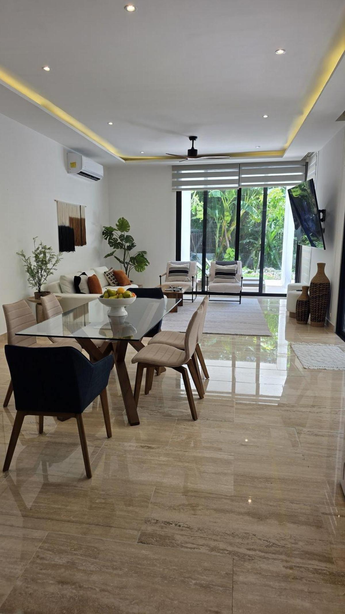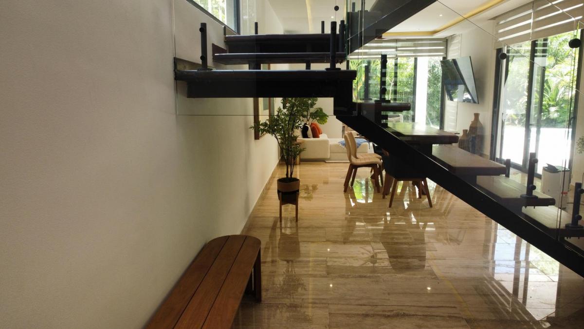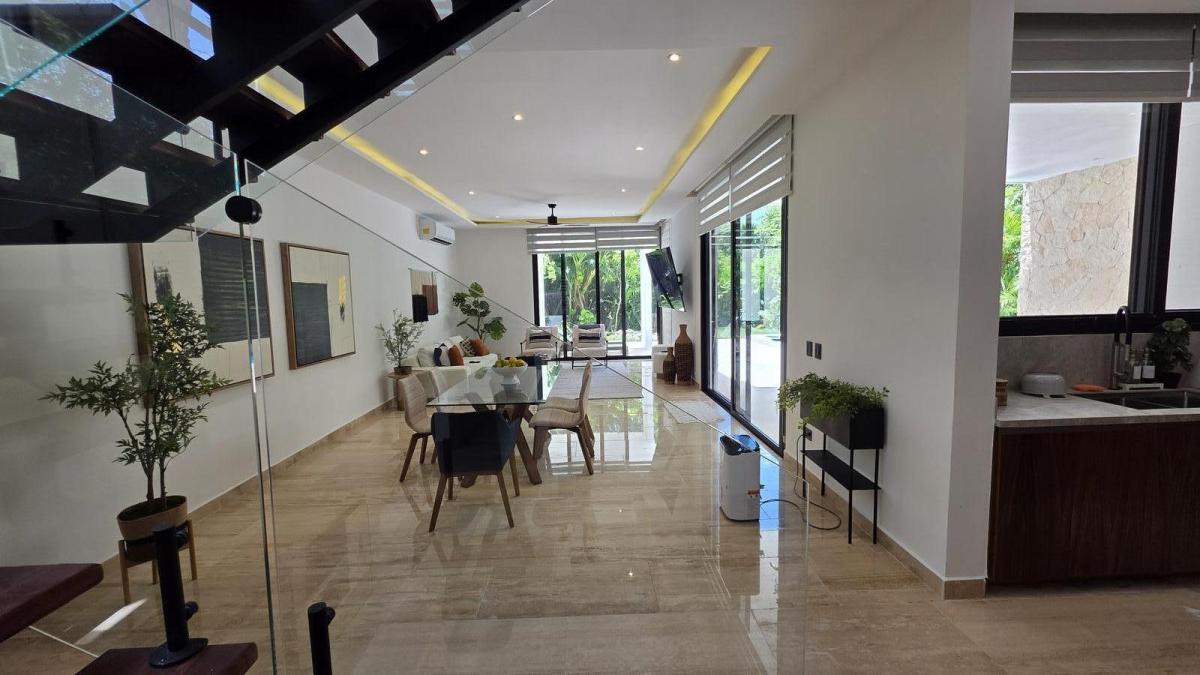 Discover an exquisite sanctuary of modern luxury within the secure gates of a premier Tulum community. This magnificent villa spans 314 square meters (approximately 3,380 square feet) of sophisticated living space, meticulously designed on a generous 513 square meter lot. It features four spacious, en-suite bedrooms and 4.5 beautifully appointed bathrooms, offering an ideal layout for both luxurious family living and high-value rental income potential. The home is a masterpiece of design, boasting floor-to-ceiling windows that bathe the interior in natural light and provide seamless integration with the lush, private outdoors.Every detail of this residence has been curated for comfort, elegance, and a premium lifestyle. The property includes a stunning 28 square meter private pool, an outdoor grill area perfect for entertaining, a practical laundry room, and a versatile TV or reading room. High-end finishes are evident throughout, from the tropical hardwood and travertine marble flooring to the fully equipped kitchen and air conditioning in every room. Additional premium features such as a reverse osmosis water system, automated irrigation, and installed Starlink internet ensure modern convenience and sustainable living.