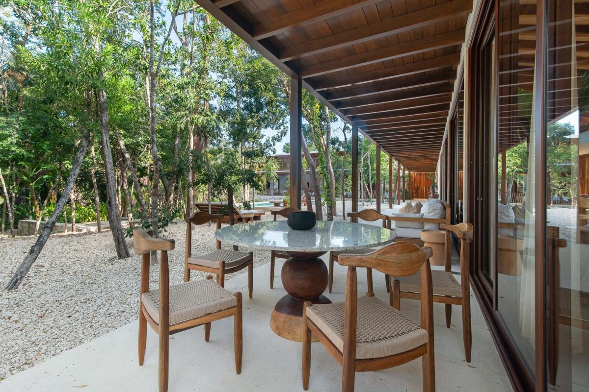Discover an award-winning architectural masterpiece that redefines sustainable luxury, a 580-square-meter villa (approximately 6,242 square feet) exquisitely laid out on a single level for seamless integration with the jungle. This boutique property features four luxurious suites, each designed as a private sanctuary with bathrooms opening onto private outdoor patios, blurring the boundaries between inside and out. The common spaces are meticulously crafted for flow and connection, including a gourmet kitchen, a spacious living and dining room, a family room, and a stunning outdoor pavilion with a BBQ area, all oriented towards the lush vegetation and a natural body of water, creating a constant sense of serenity and expansion.The intelligent design prioritizes privacy, wellness, and self-sufficiency, with features that captivate both the inhabitant and the investor. The property offers a private resort-like experience with a spectacular infinity pool, a unique tree house, and multiple bathtubs for relaxing under the sky. Beyond the obvious luxury, the home is 100% self-sufficient thanks to 36 solar panels and a battery system, operates with an innovative and environmentally friendly water treatment system (biodigester and evapotranspiration pits), and boasts a private cenote on the land, setting a new standard for conscious, low-impact living.