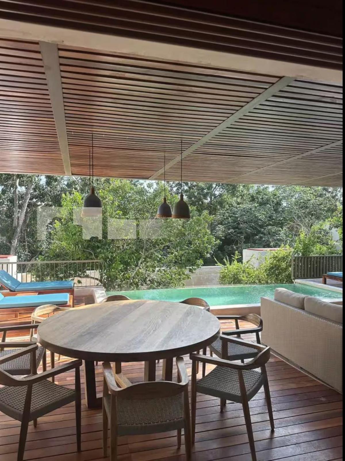 Imagine a sanctuary of contemporary sophistication where every detail has been meticulously designed to merge modern elegance with the serenity of nature. This exquisite property offers 365.47 square meters of construction, approximately 3,934 square feet, distributed in an open-plan design that maximizes space and fluidity. The 301-square-meter lot includes a generous 138-square-meter garden, creating a private green lung. The residence features four spacious and luxurious suites, each with its own private bathroom, ensuring absolute comfort and privacy for residents and guests, making it ideal for a family or a group of friends seeking the ultimate Tulum experience.The heart of this home is a modern open-concept kitchen, equipped with top-of-the-line appliances, perfect for creating culinary and social memories. This space integrates harmoniously with a spacious living room that opens completely onto a meticulously designed terrace, blurring the boundaries between inside and outside and allowing for a smooth transition to social areas ideal for relaxation and entertainment. Ceilings of up to 4.5 meters in select areas add a sense of grandeur and spaciousness, while finishes in locally sourced wood not only provide warmth and a natural aesthetic but also reflect a commitment to sustainability and durability, evoking the authentic essence of Tulum.