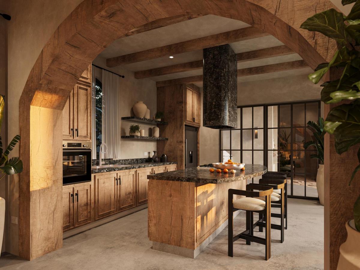 The kitchen, much more than a culinary space, is a design statement equipped with high-end appliances and custom cabinetry in natural finishes, created for both daily living and elevated entertainment. The rooftop constitutes a private escape with a tranquil plunge pool and a chill-out lounge designed for slow afternoons and starlit nights, surrounded by natural textures and open skies—a serene vantage point to relax, recharge, or share an intimate moment above the jungle. Every spatial element has been intentionally designed to reflect balance, serenity, and sophistication, making this villa a sanctuary of absolute clarity and deep connection with the environment.