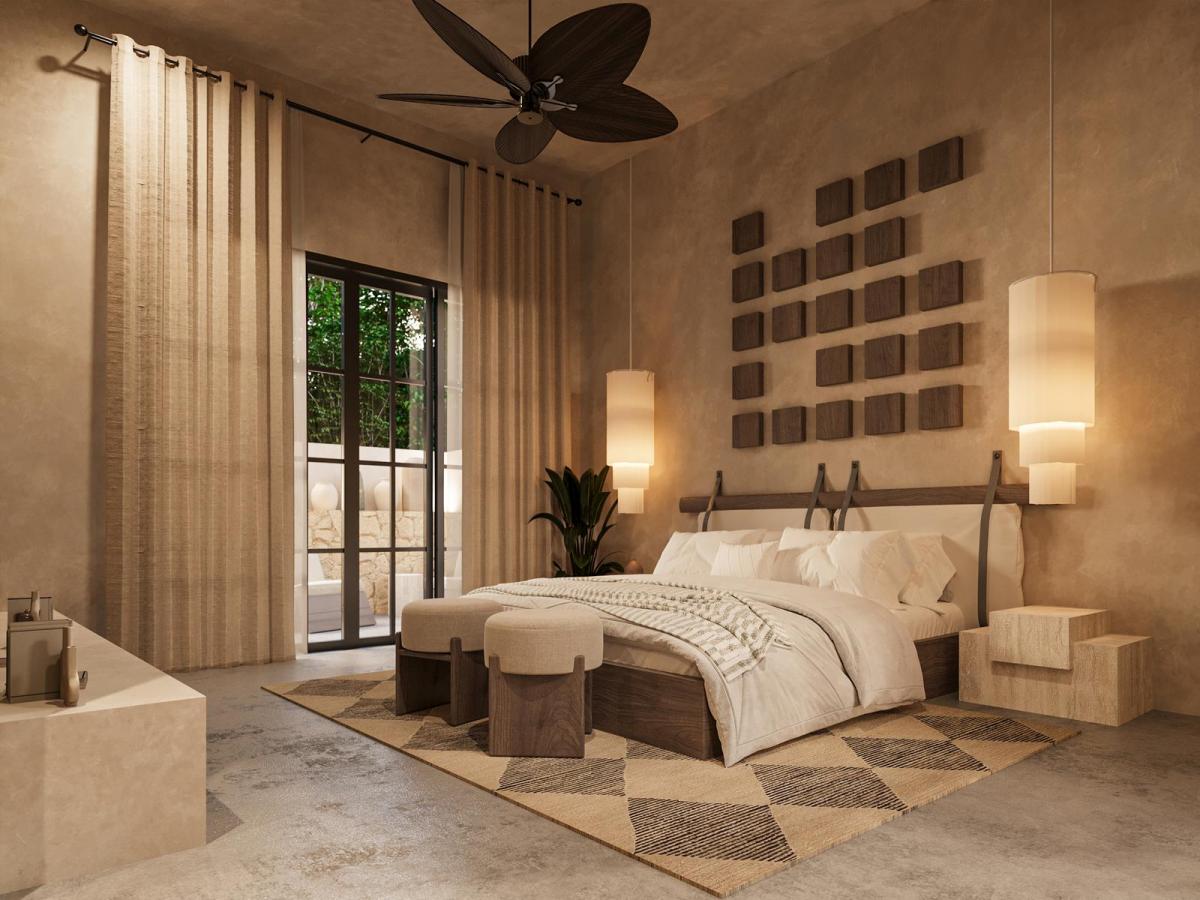 Imagine an architectural masterpiece where Zen philosophy merges with contemporary design to create a living experience of absolute clarity and purpose in the heart of Tulum. This exceptional 512-square-meter villa, approximately 5,511 square feet, unfolds elegantly on a 355-square-meter lot, offering a perfectly balanced distribution between 311 square meters of refined interior spaces and 135 square meters of meticulously designed outdoor areas. The property features four beautifully appointed bedrooms, each with its own private bathroom and walk-in closet, designed to host up to 13 guests in absolute comfort and privacy, ideal for long stays, retreats, or high-yield vacation rentals. Every corner of the home reflects a philosophy of intentional, serene, and deeply livable design, where light, space, and form unite in perfect harmony.The heart of this residence is a stunning double-height living room, where natural light floods the space through floor-to-ceiling windows, creating an astonishing sense of spaciousness and openness that sets the tone for the entire home. This architectural centerpiece, a blend of clean lines, earthy textures, and discreet luxury, flows seamlessly to a custom-designed dining room with an artisanal table for 10 diners, framed by natural textures and soft lighting that creates the perfect setting for shared meals and meaningful conversations. The flow continues outdoors where a private oasis awaits, with a sculpted pool that invites calm, framed by lush landscaping and a sunken exterior lounge—a striking yet intimate space designed for afternoon conversations, sunset drinks, or simply reconnecting with serenity.