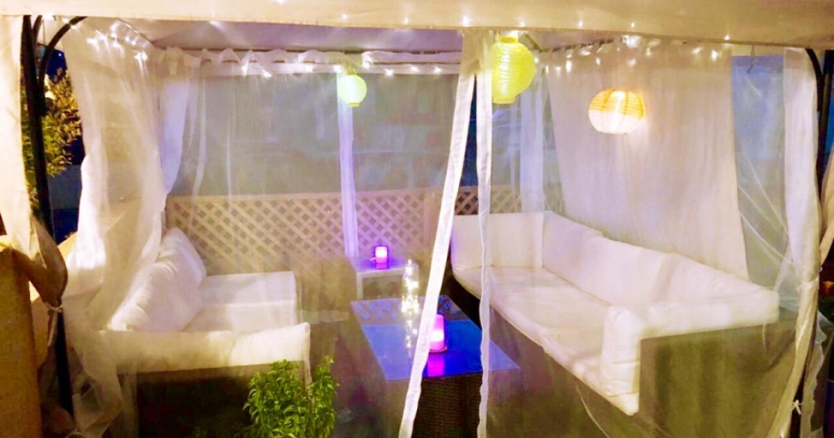 The romantic character of the homeowners is evident the moment you step through the gates. Here, you'll find a charming gazebo draped in delicate fabric, furnished with soft light sofas and a table. Evenings spent here by candlelight will fill you with tranquility and leave all worries behind. By day, the manicured garden delights the senses with its Mediterranean aromas, while the sparkling blue pool offers refreshing relief.