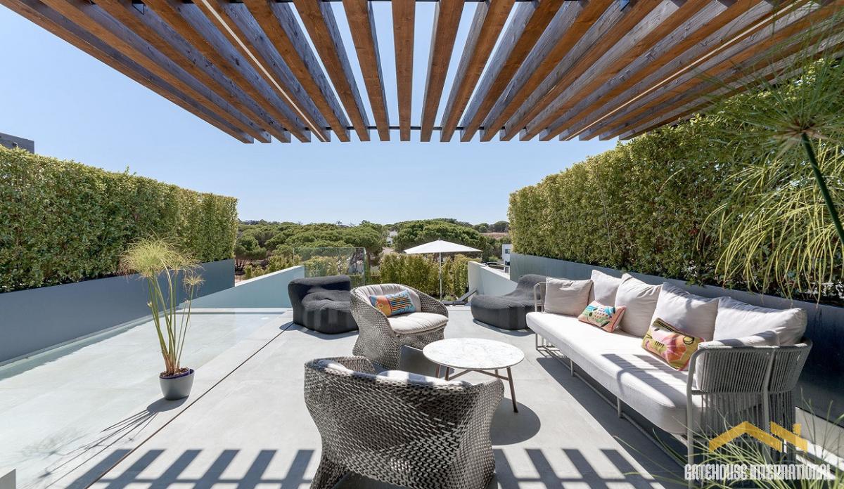 Contemporary Luxury Townhouse in The Algarve Golden Triangle - located in the development of Vilas Alvas, close to the beach and between the golf resorts of Vale do lobo and Quinta do Lago is this stunning modern townhouse with 3 bedroom suites, a home cinema, a garage and outside areas including a pool and a roof terrace with sea views. Built on 4 levels, the property has an elevator to all floors and comprises an entrance hall, living and dining room, and open plan kitchen. On the lower level is a 2nd lounge/home cinema, laundry room, guest cloakroom, and a single garage. The first floor has 2 bedroom suites, with the second floor dedicated to the master suite. Crowning the home is a spectacular rooftop terrace, complete with a bar and seating area, perfect for entertaining or simply soaking in the panoramic views at sunrise or sunset. Large sliding open to the outside areas, including a BBQ terrace just off the kitchen and a lounge terrace with direct access to the private swimming pool and garden. in brief: - entrance - living and dining room - fitted kitchen - lounge/cinema room - guest cloakroom - 3 bedrooms - 3 bathrooms - garage - roof terrace - swimming poolFeatures