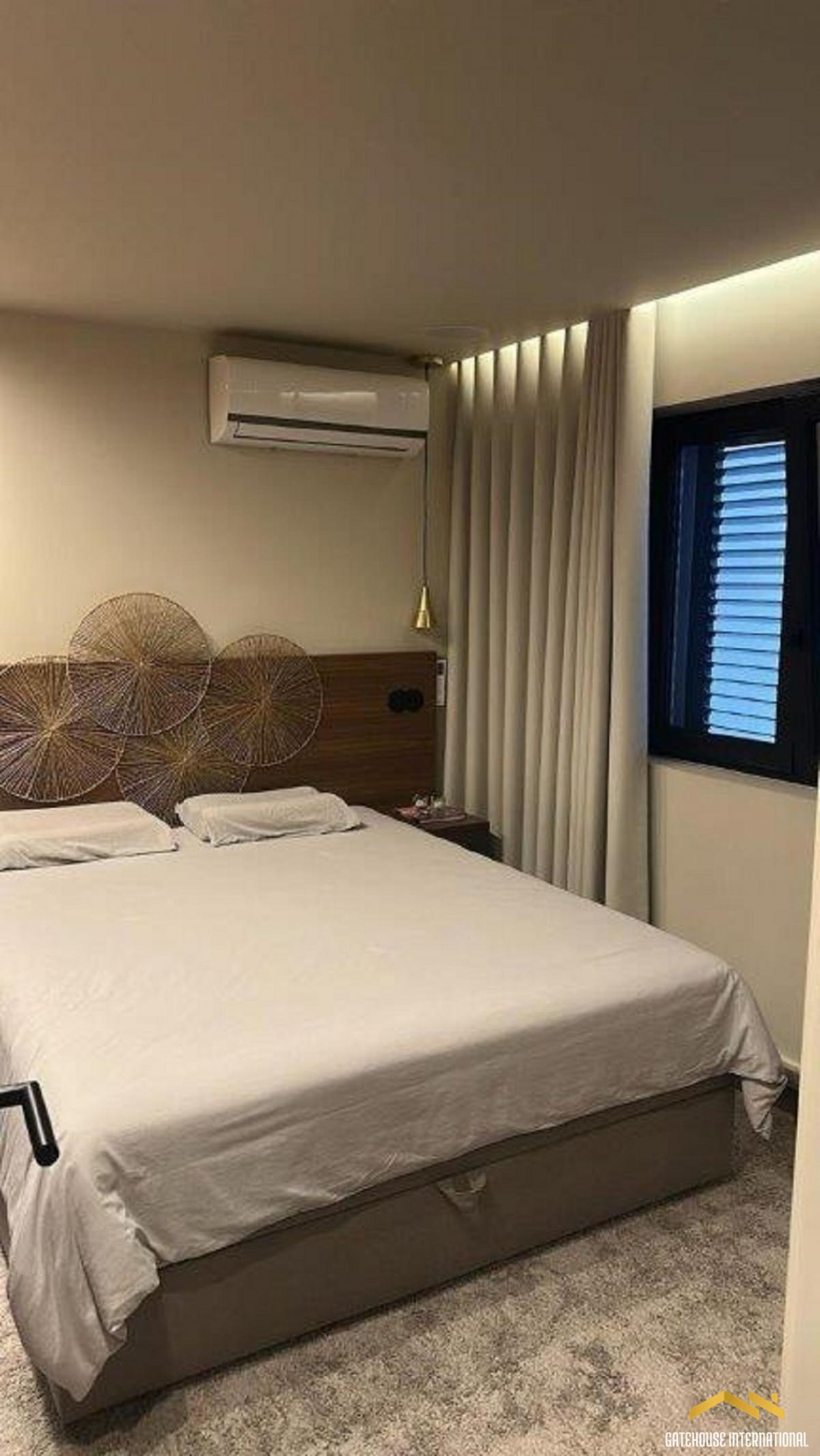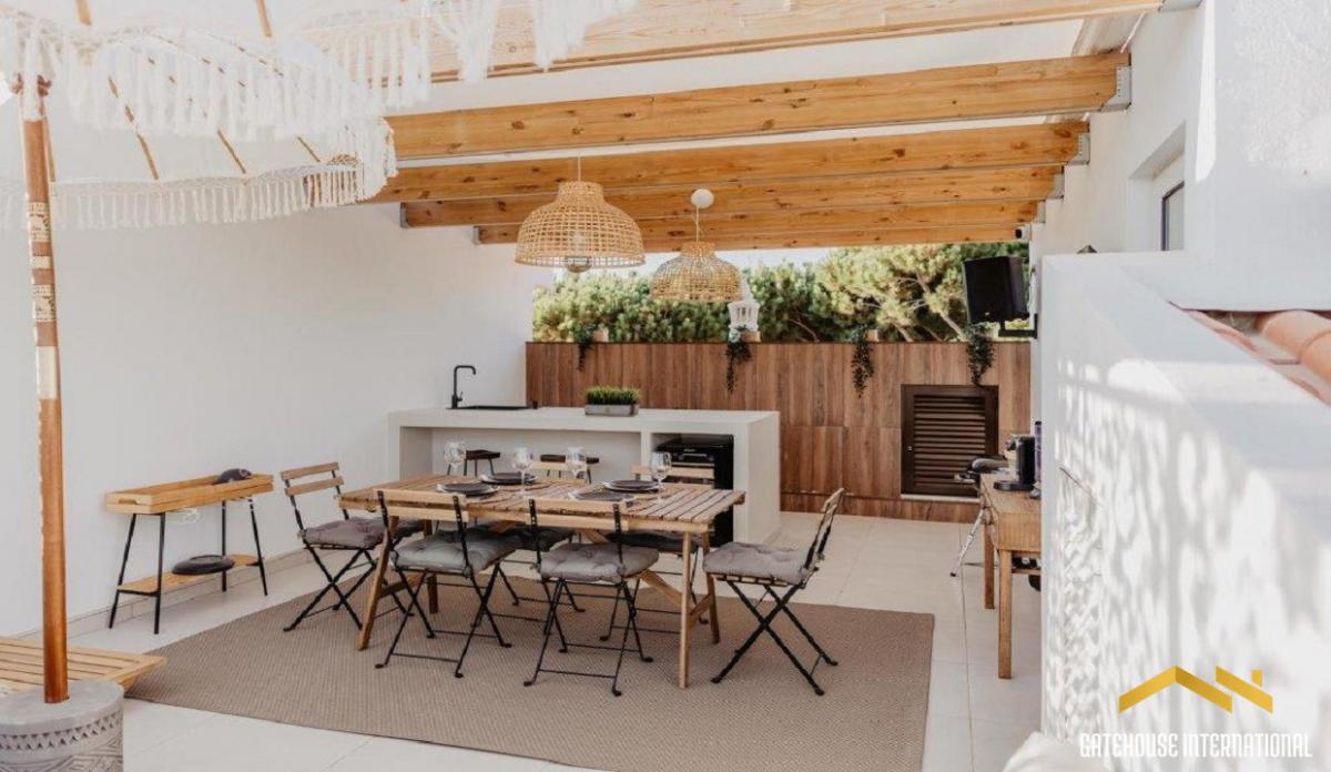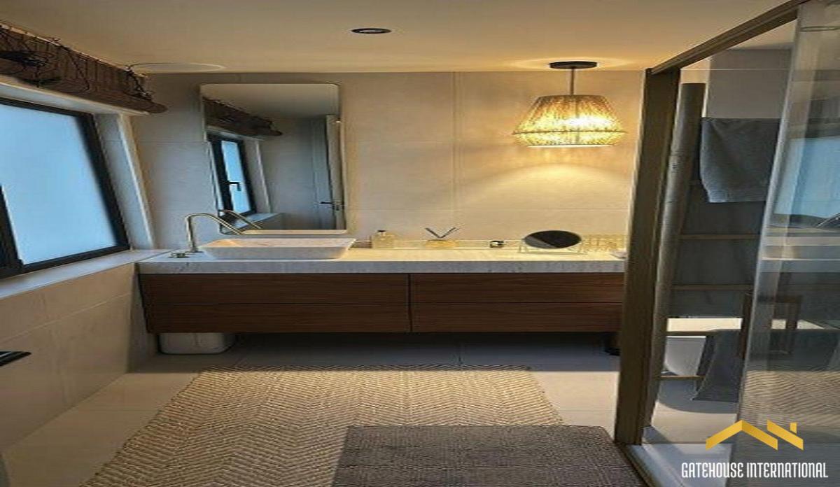 This 85 m2 second and top-floor apartment features an entrance hall, an open-plan living room with dining space and fitted kitchen with Bosch appliances and breakfast bar, two bedrooms, two bathrooms (one en-suite), spacious rooftop terrace with barbecue, sink, dining area, and lounge space, communal swimming pool, parking are and gardens. Layout * Entrance hall * Open-plan living and dining area with covered terrace and valley and distant sea views * Modern fitted kitchen with Bosch appliances, breakfast bar * Two bedrooms and two bathrooms Outside * Shared swimming pool * Roof terrace, Al Fresco dining space * BBQ zones * Communal gardens and parking Location Located just 5 minutes from Vilamoura Marina, golf courses, and golden sandy beaches. At a glance * Penthouse * 85 m2 build * Two bedrooms, two bathrooms * Roof terrace, Al fresco dining, BBQ * Communal gardens and parking