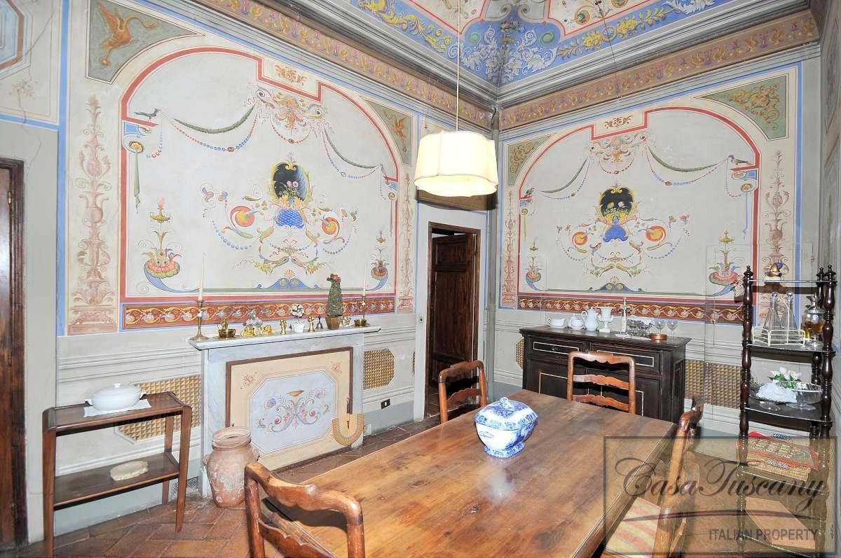 The original marble staircase leads to the first floor which is the elegant and noble part of the building which consists of an impressive living room with original frescos, 3 bedrooms (one bedroom with a charming alcove) , dining room, 2 bathrooms, kitchen and a second access from the rear of the building.